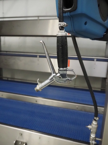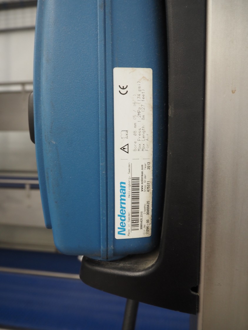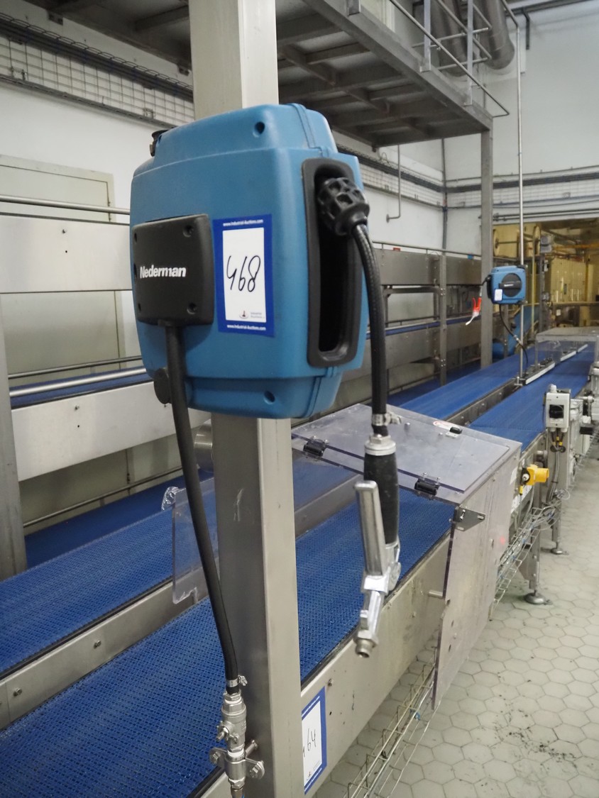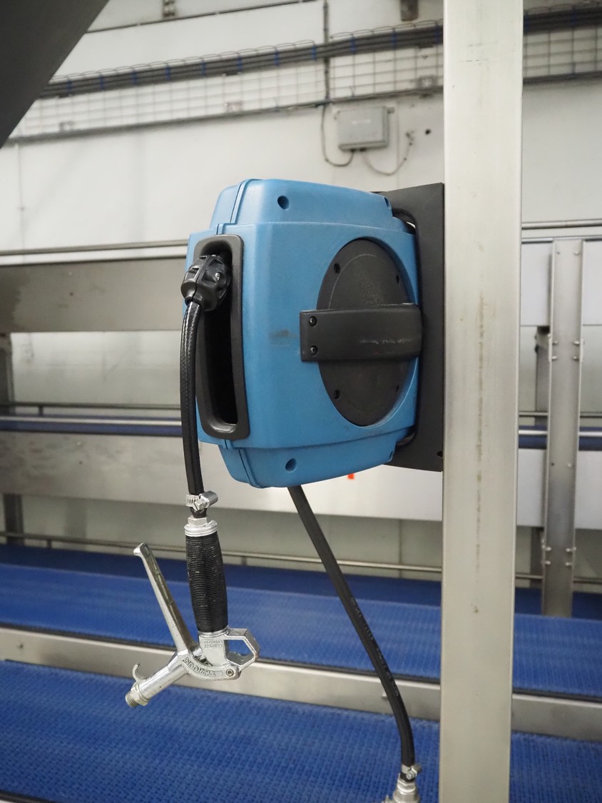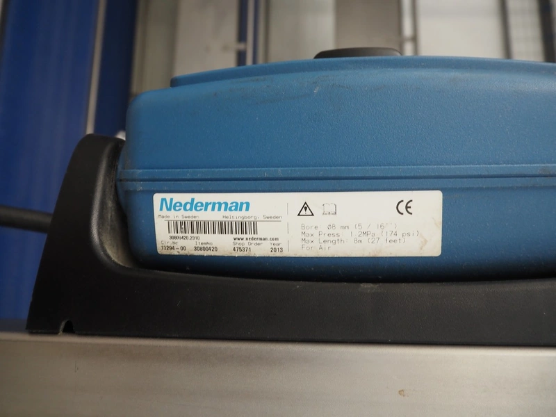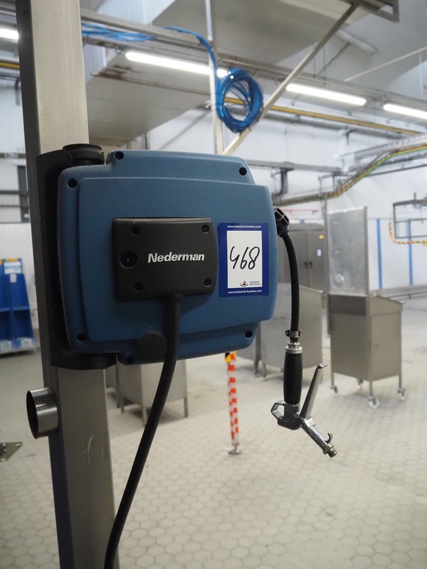 Nederman hose reel with plastic air hose and pistol, dimensions: 370 mm x 180 mm x 320 mm.