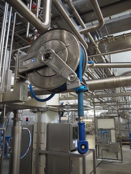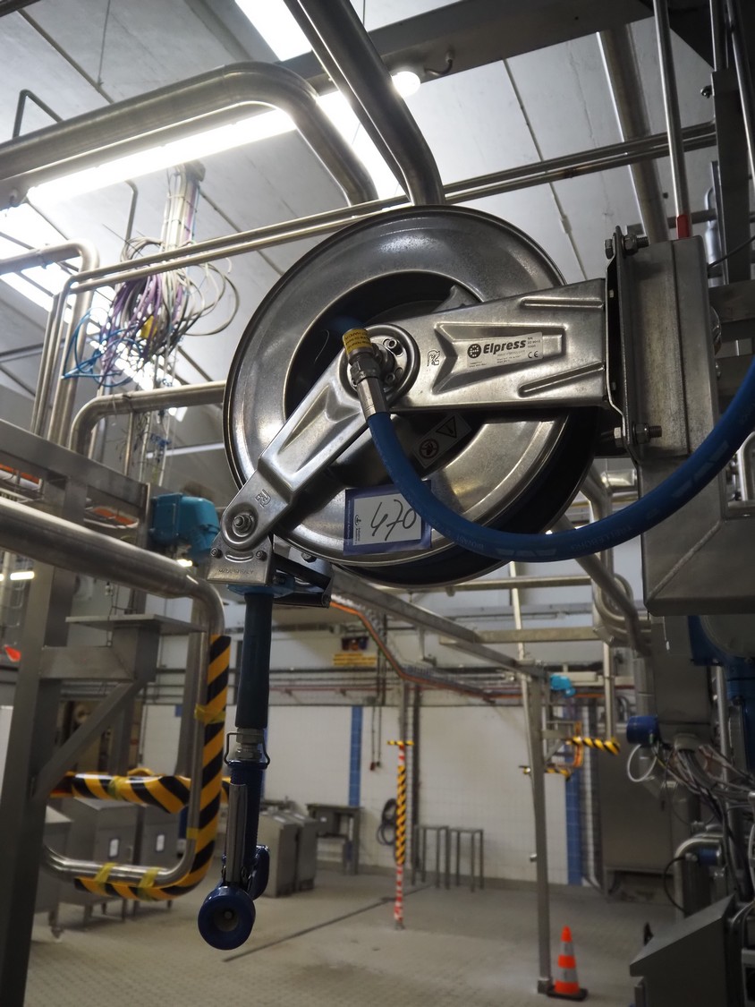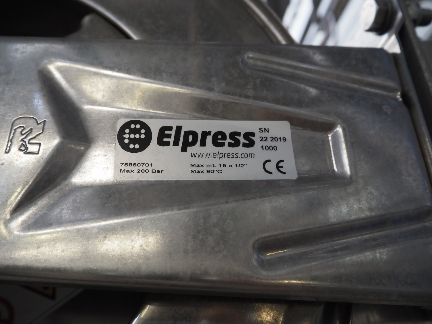 Elpress s/s hose reel with plastic hose and pistol, maximum pressure: 200 bar, dimensions: 500 mm x250 mm x 500 mm.