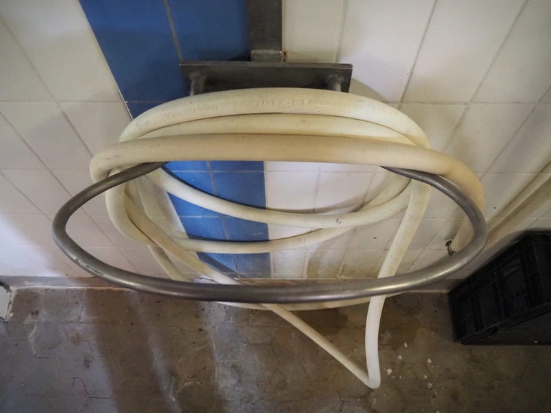 S/s hose reel with plastic hose, dimensions hose reel: 500 mm x 220 mm x 250 mm.