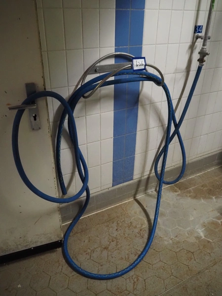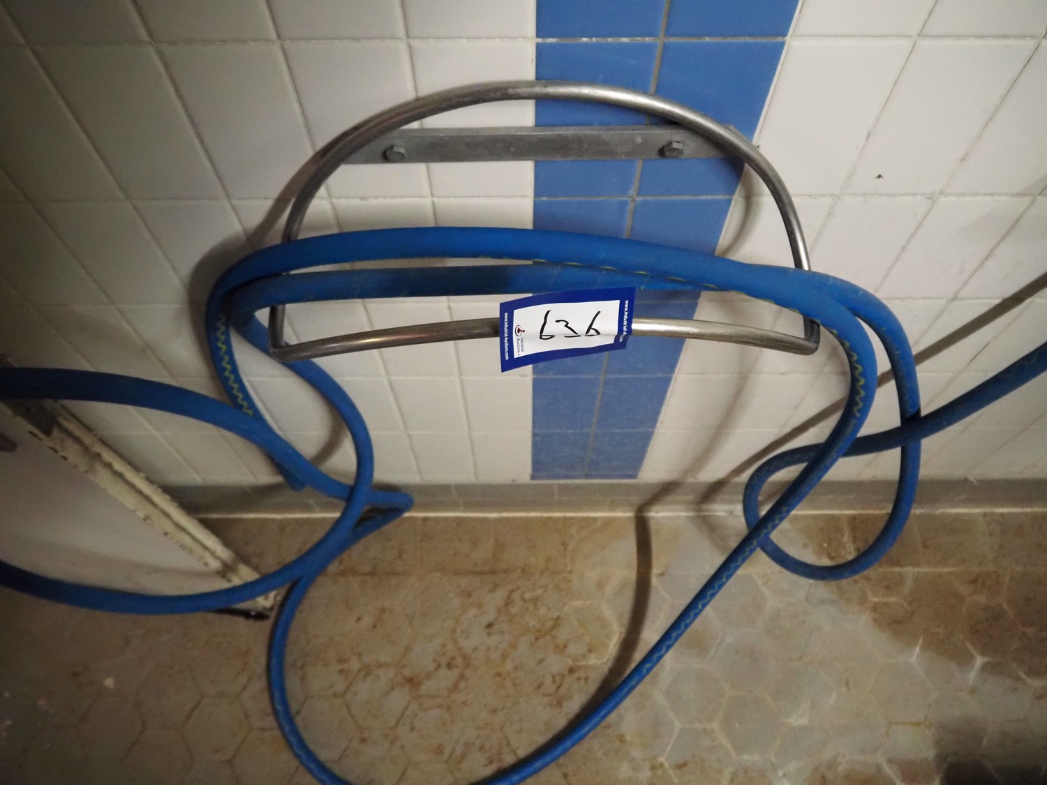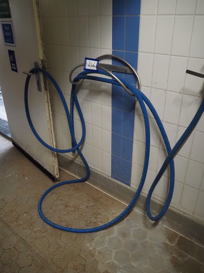 S/s hose reel with plastic hose, dimensions hose reel: 500 mm x 220 mm x 250 mm.