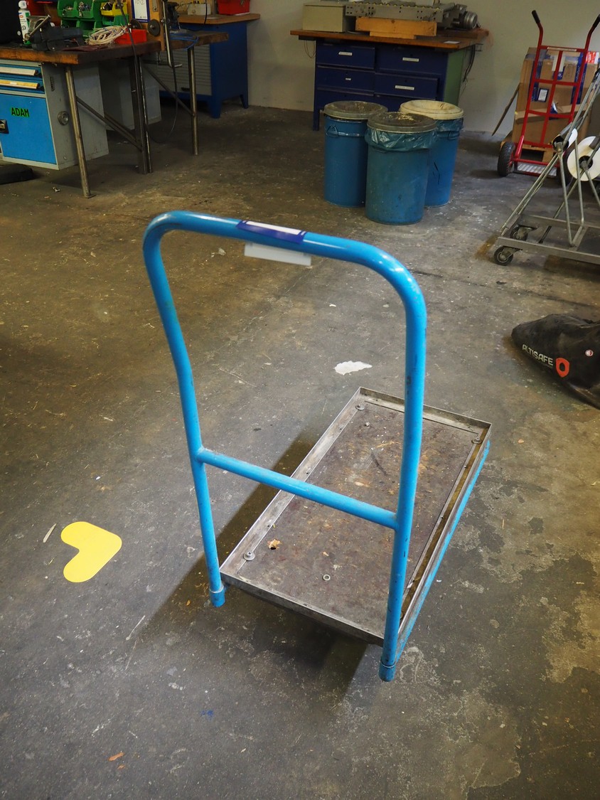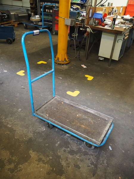 Steel trolley, dimensions: 1000 mm x 450 mm x 1100 mm.