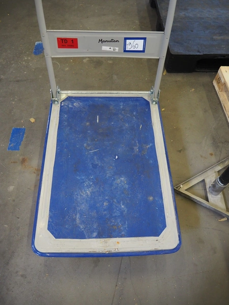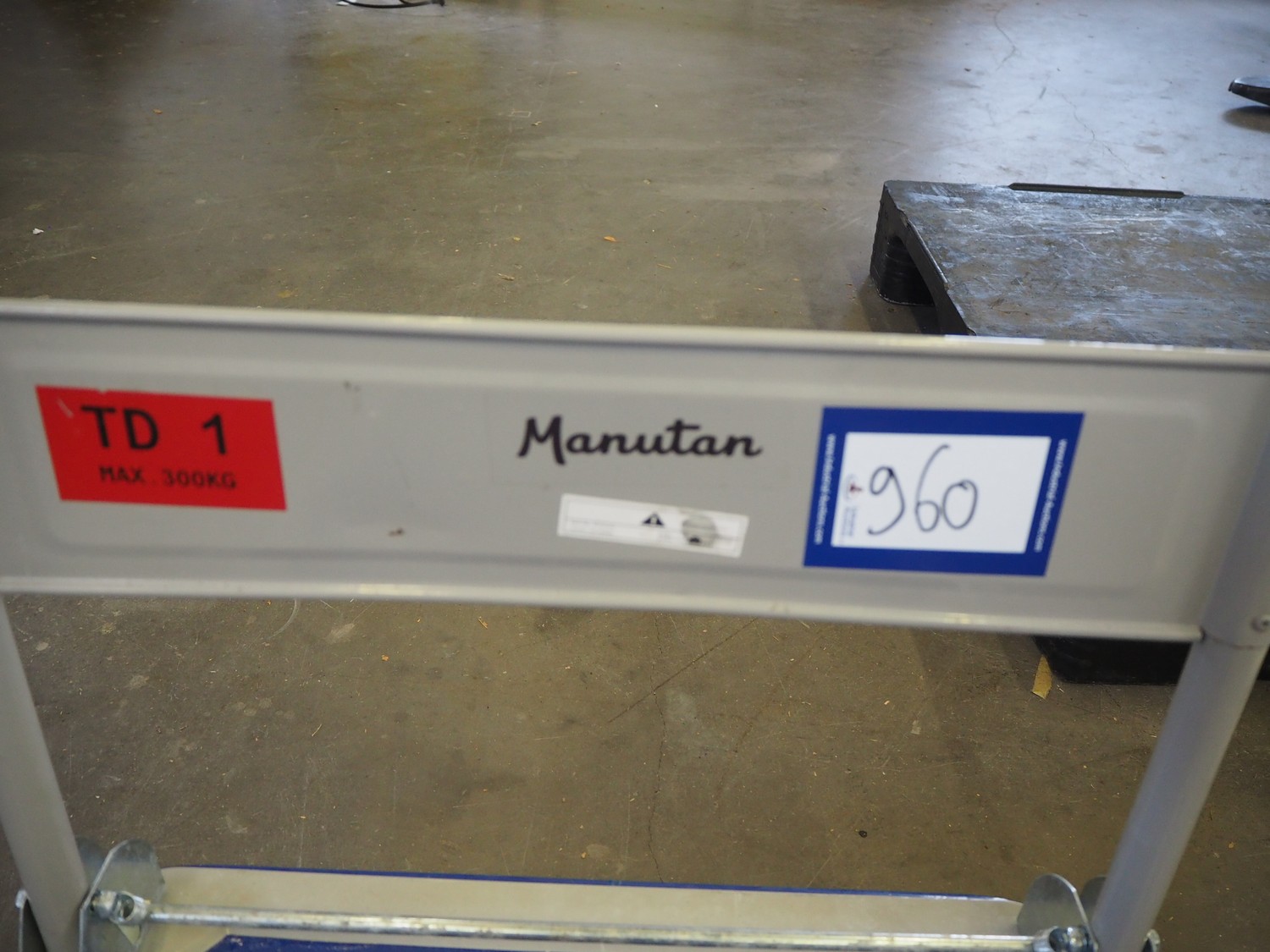 Manutan trolley, maximum capacity: 300 kg, dimensions: 900 mm x 600 mm x 900 mm.