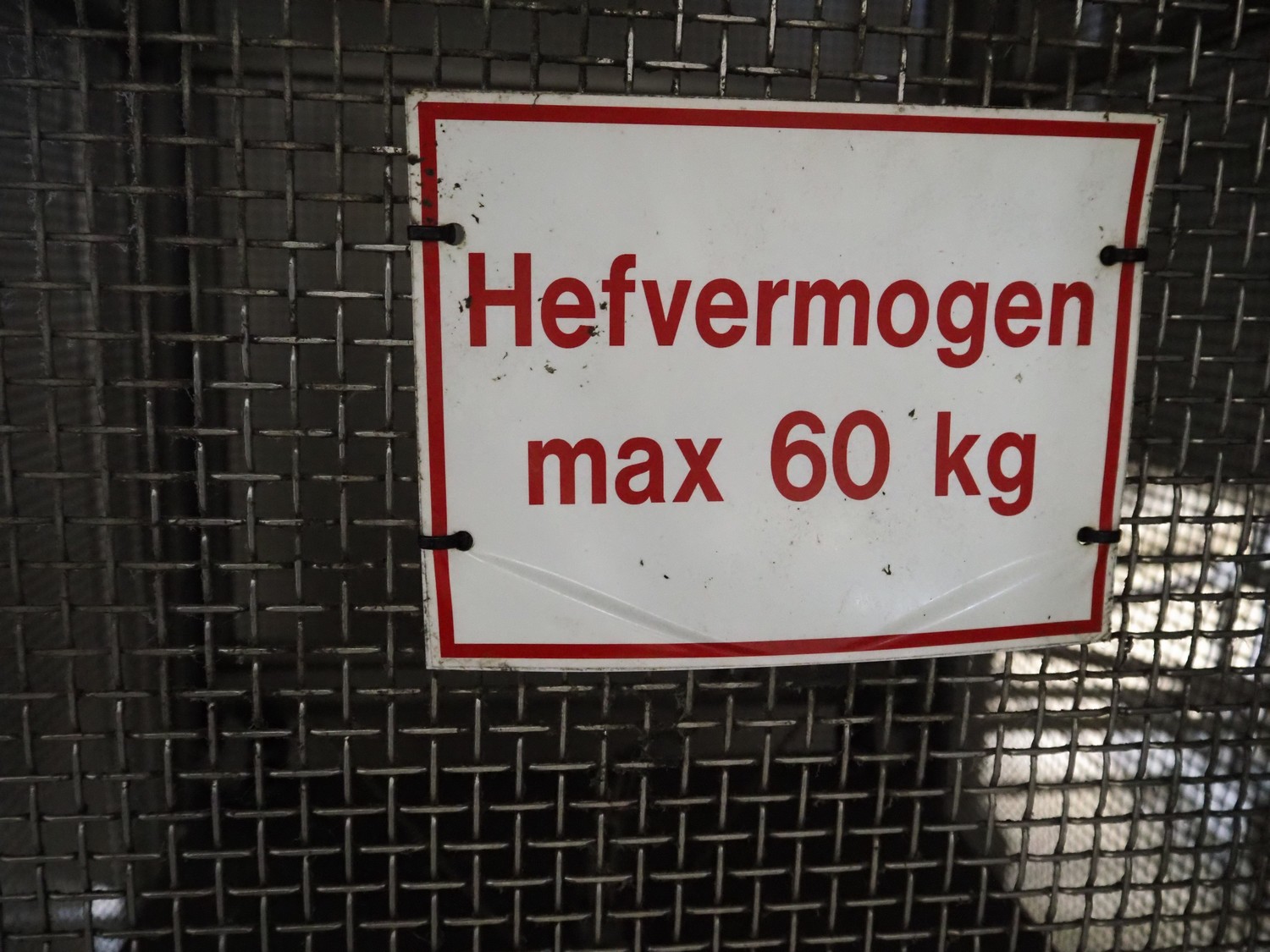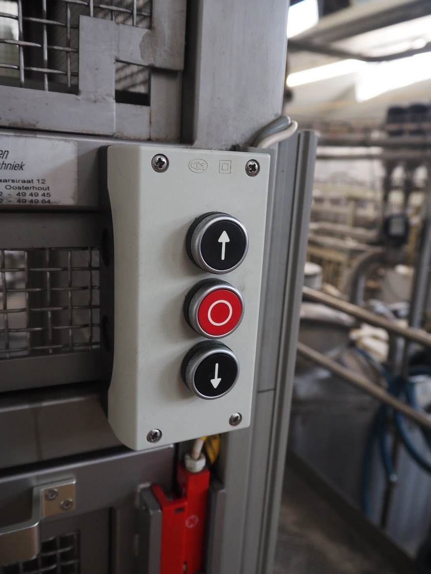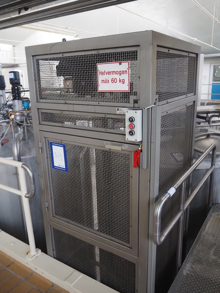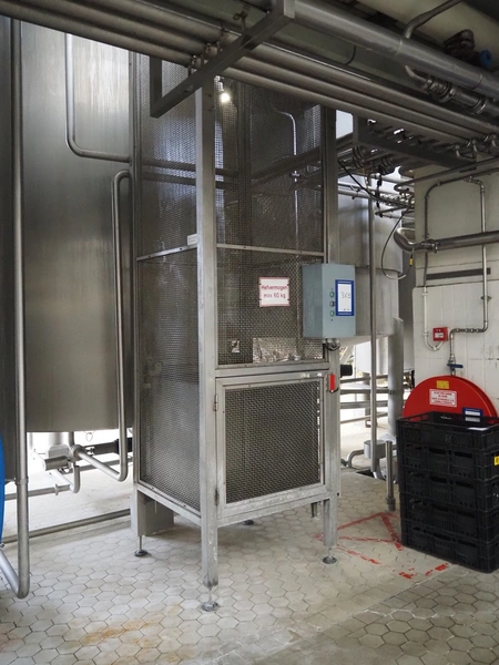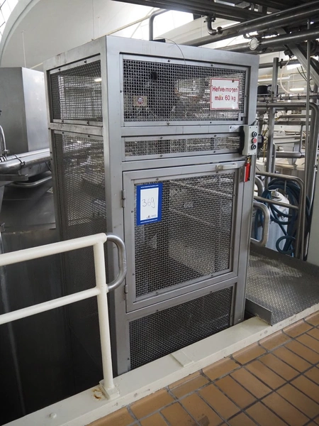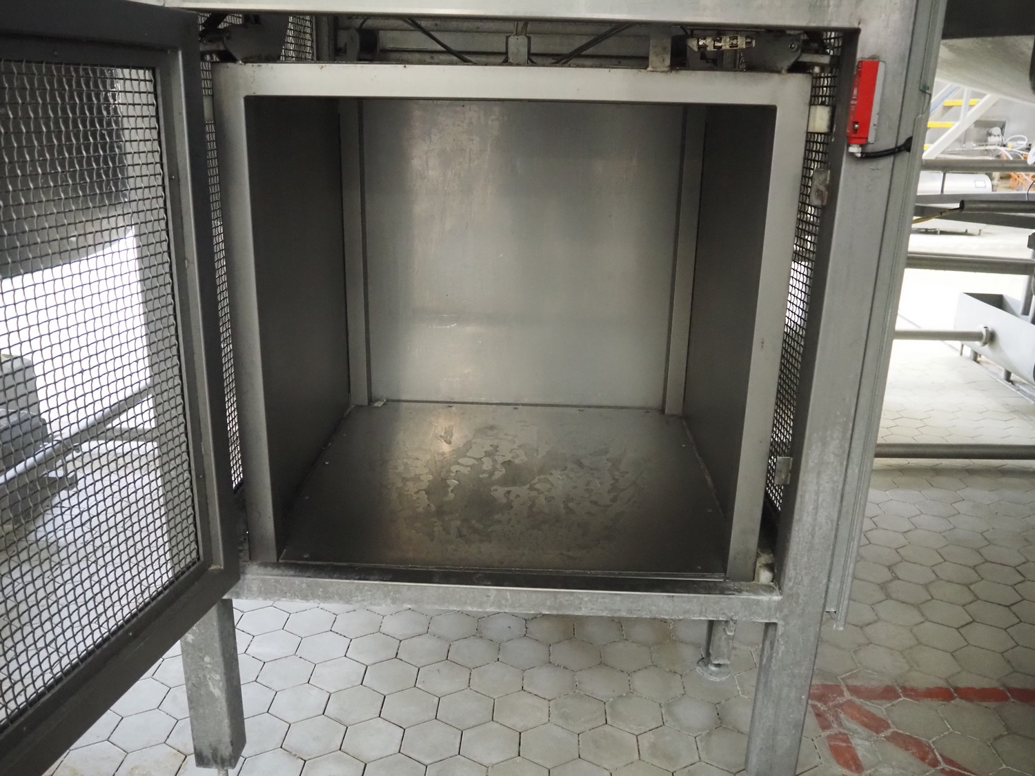 S/s elevator, platform dimensions: 700 mm x 700 mm, lifting height: 3800 mm, capacity: 60 kg, total dimensions: 5000 mm x 900 mm x 950 mm.
