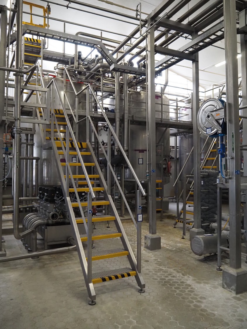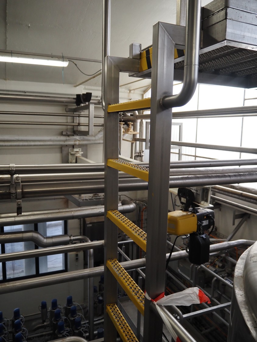 S/s platform with stairs, working height: 2900 and 4800 mm, total dimensions: 8200 mm x 6800 mm x 5700 mm.