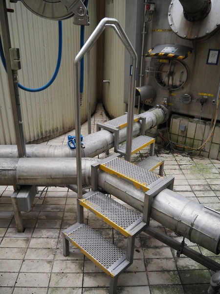 S/s platform with stairs, working height: 730 mm, total dimensions: 1000 mm x 580 mm x 1800 mm.