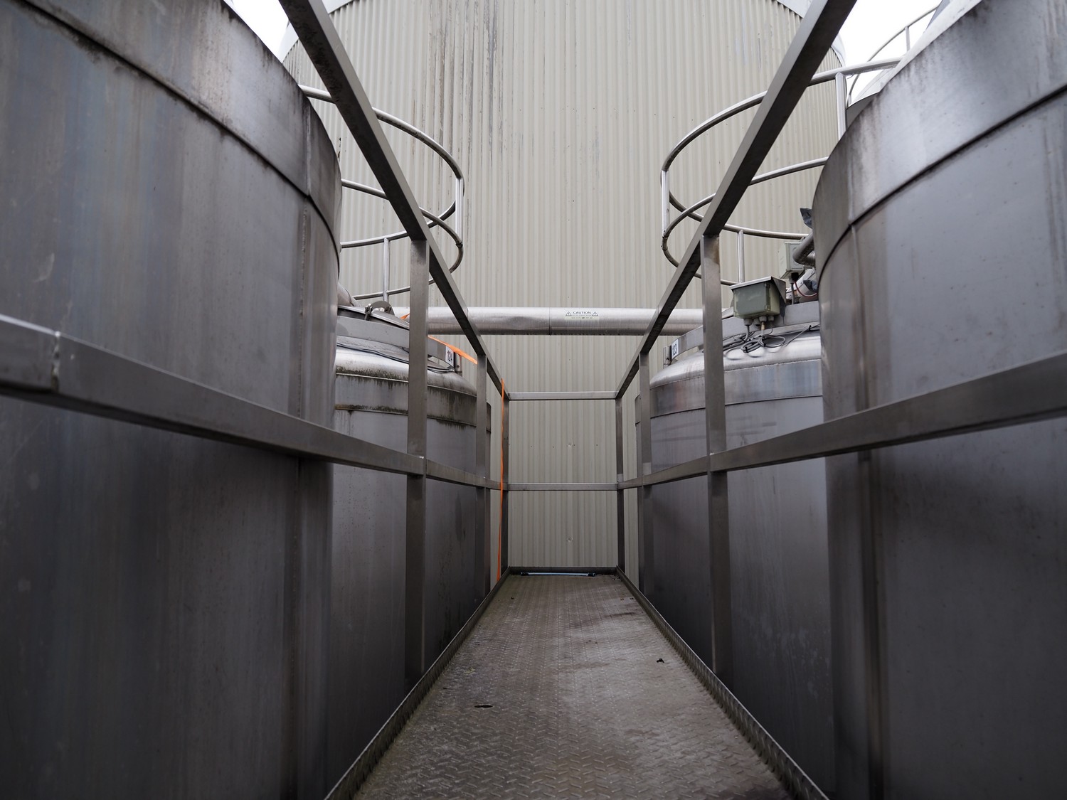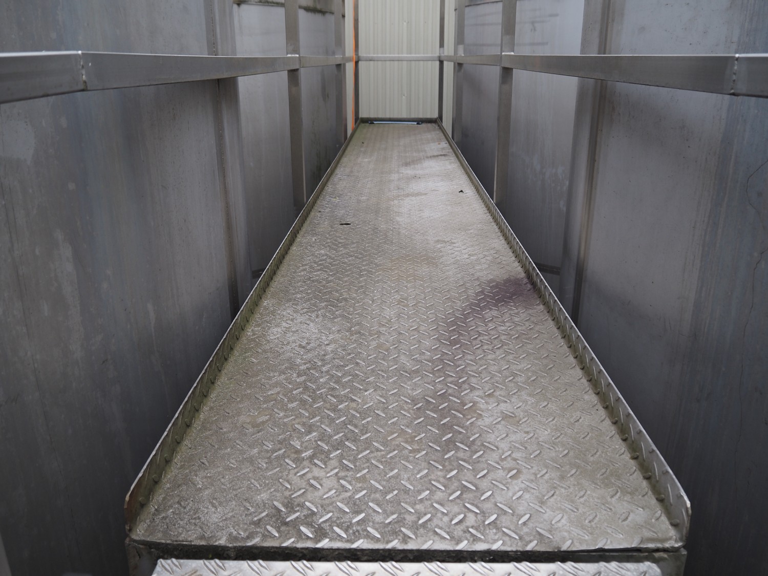 S/s and aluminium platform with stairs, working height: 4150 mm, total dimensions: 5350 mm x 850 mm x 5250 mm.