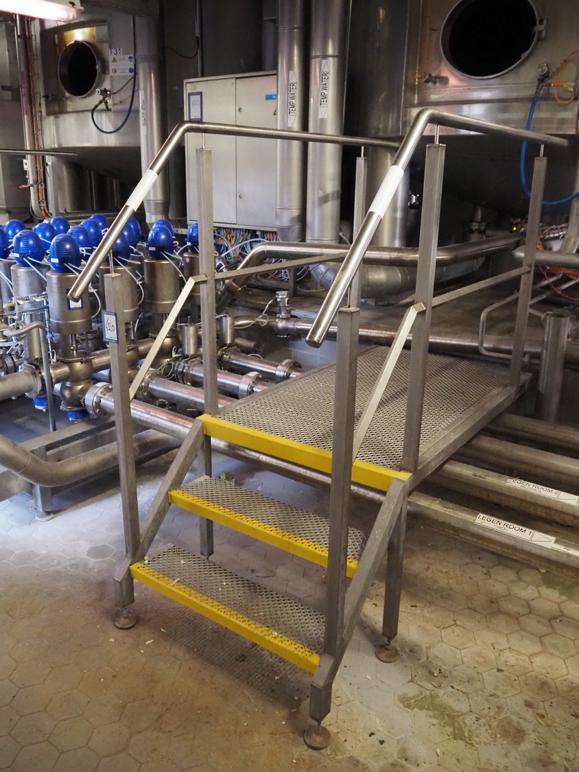 S/s platform with stairs, working height: 690 mm, total dimensions: 2000 mm x 900 mm x 1750 mm.