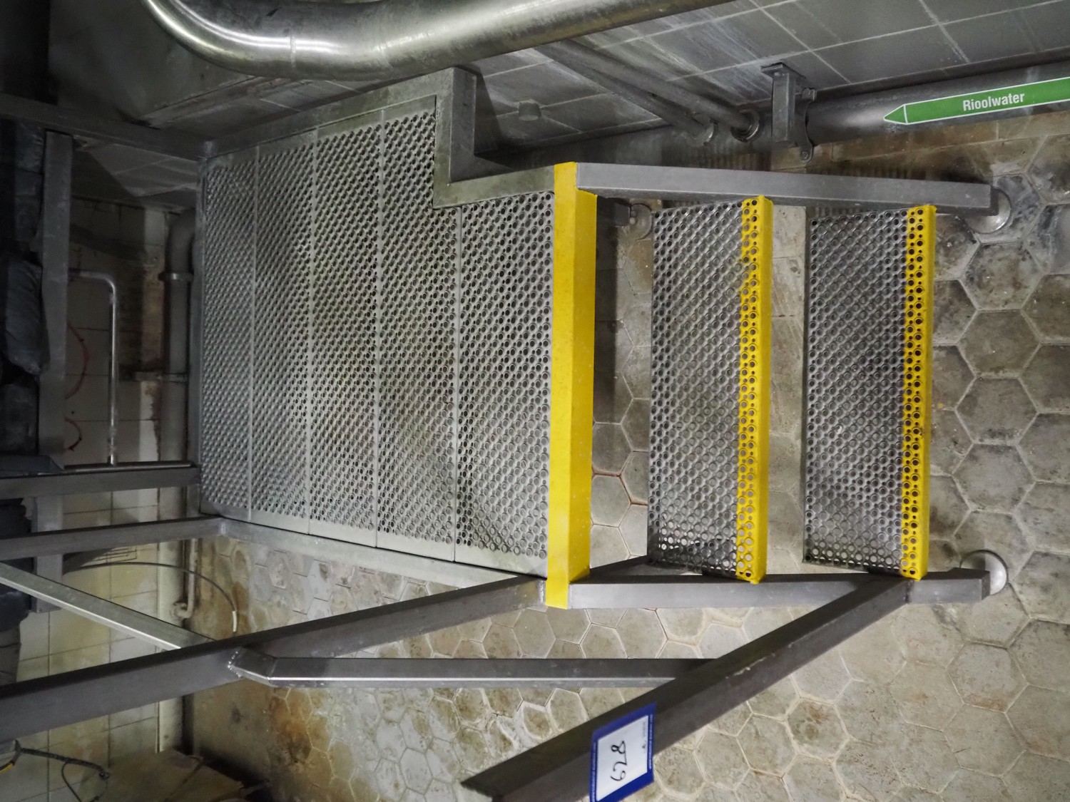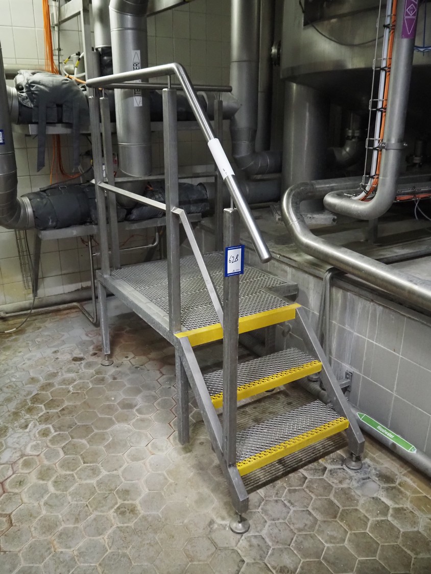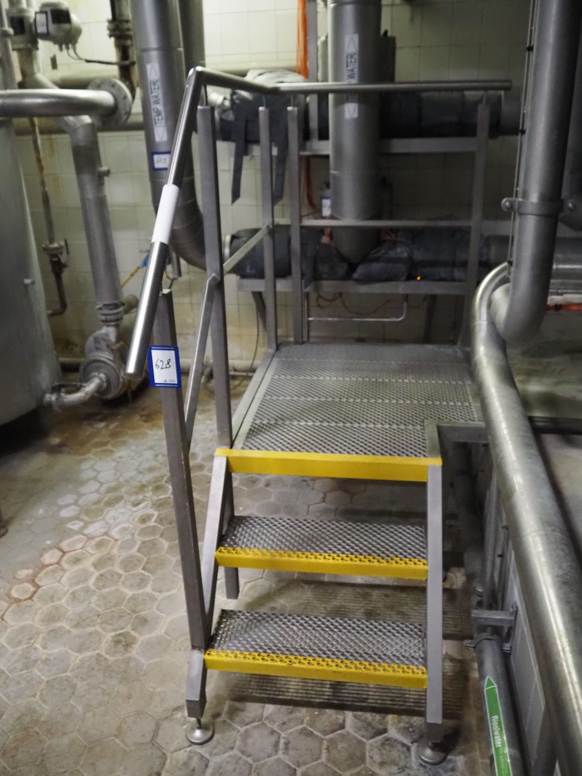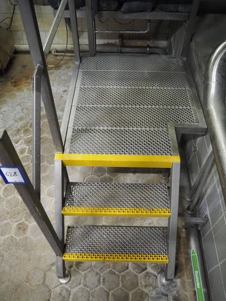 S/s platform with stairs, working height: 630 mm, total dimensions: 1500 mm x 900 mm x 1700 mm.