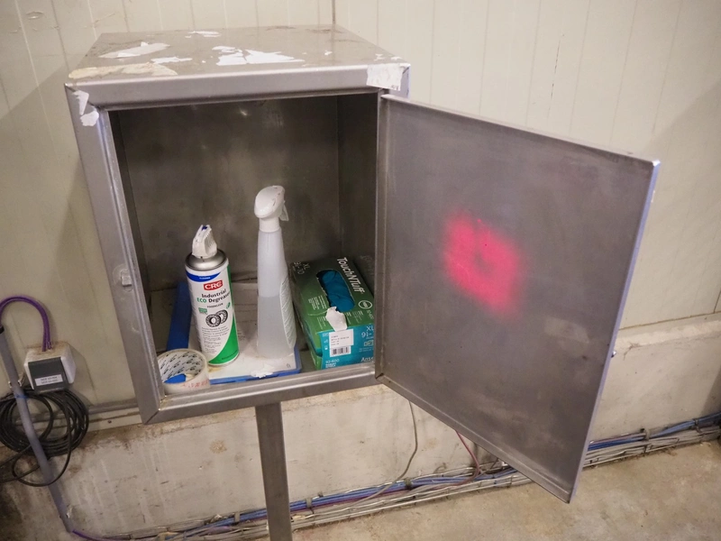 S/s cabinet, dimensions: 400 mm x 400 mm x 1350 mm.