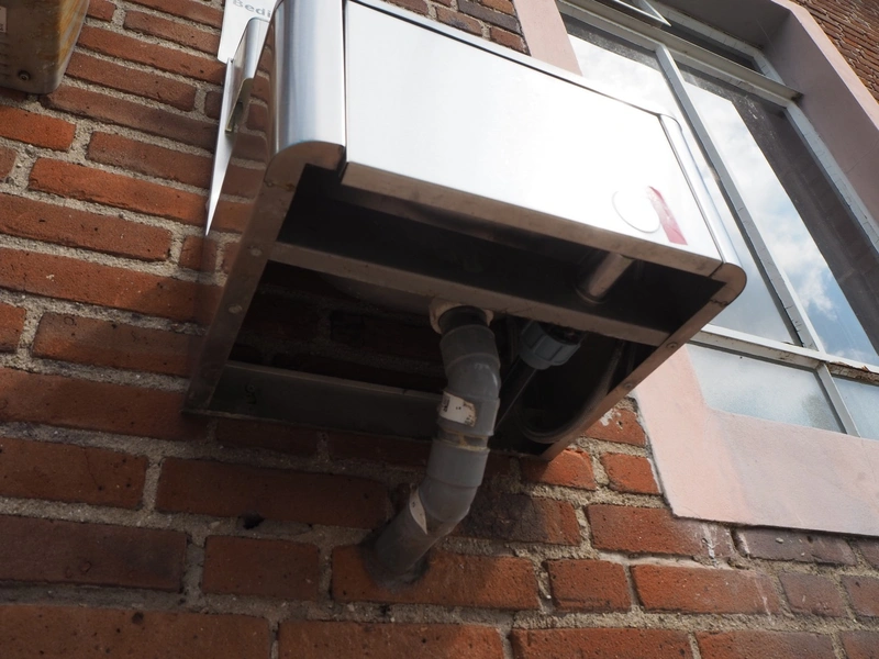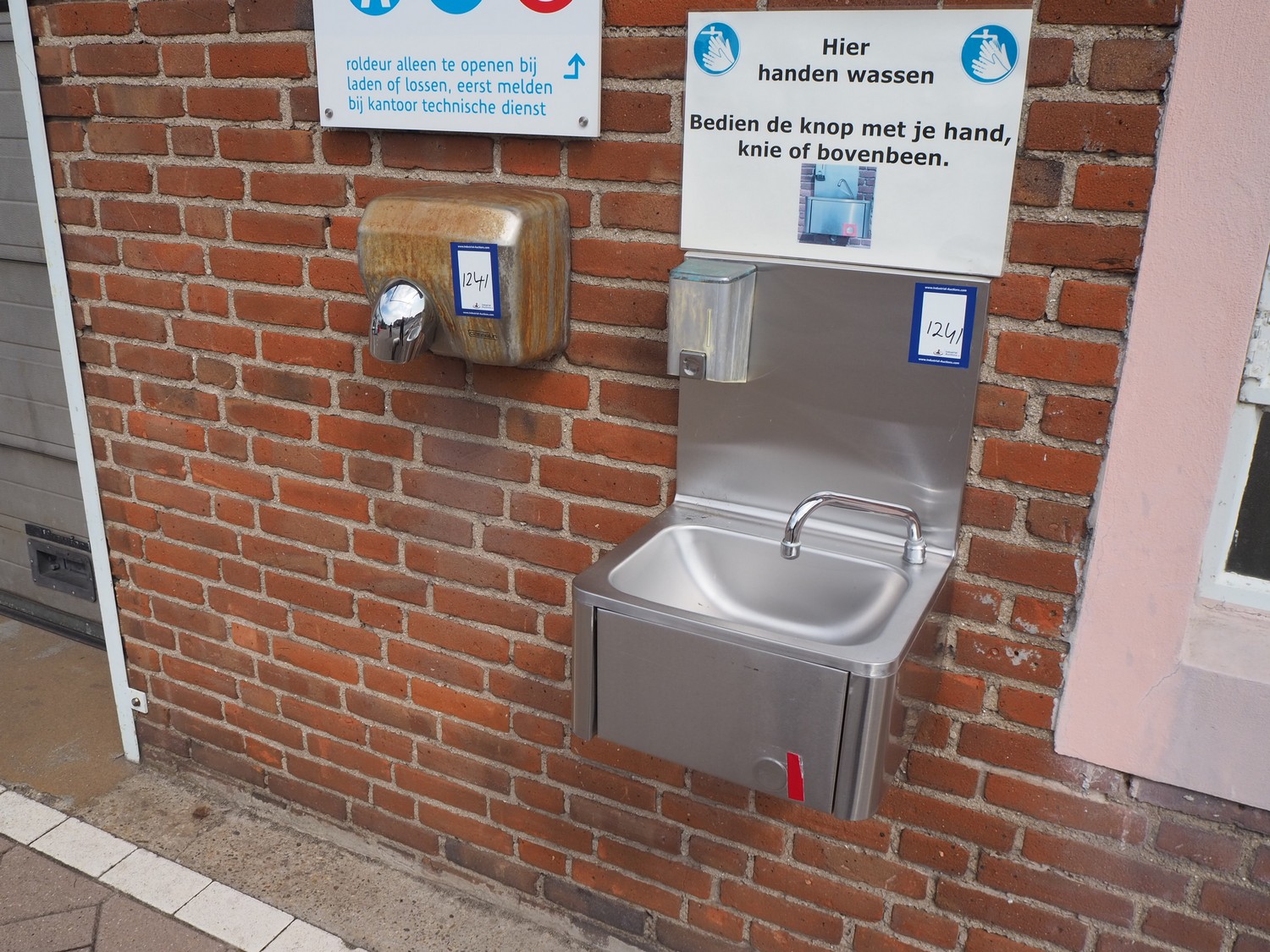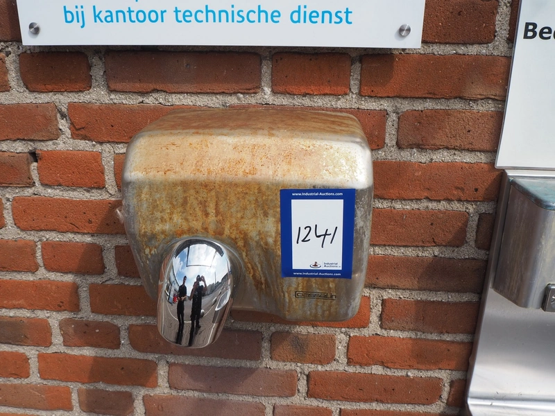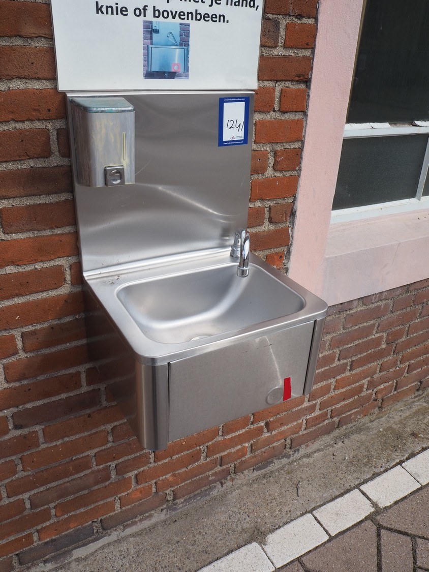 S/s sink with faucet, soap dispenser and blower, dimensions sink: 400 mm x 350 mm x 600 mm, dimensions blower: 300 mm x 200 mm x 220 mm.