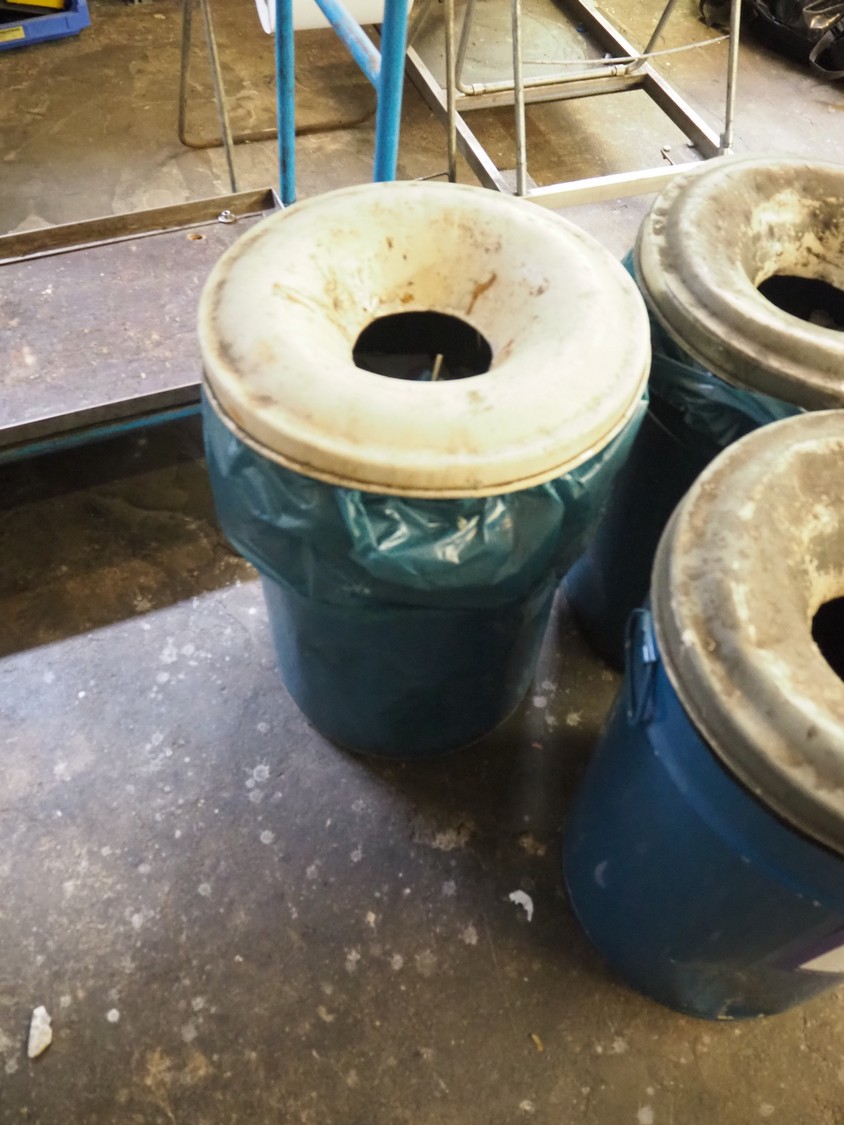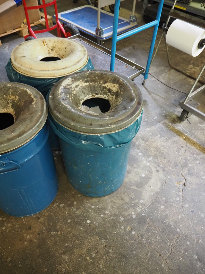 3 waste bins, dimensions: (3x) Ø 420 mm x 600 mm.
