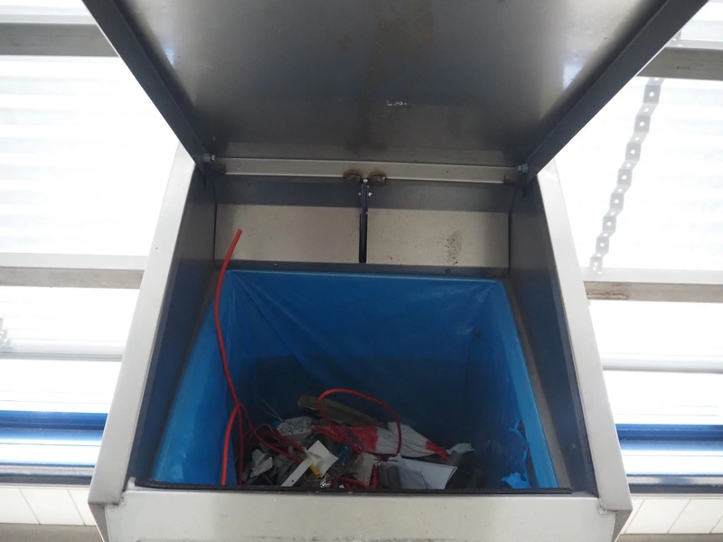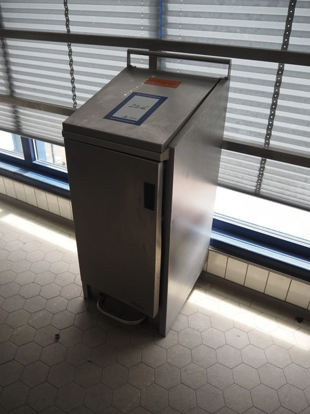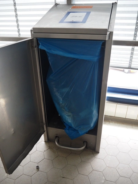 Bosgraaf s/s waste bin, dimensions: 450 mm x 480 mm x 1070 mm.