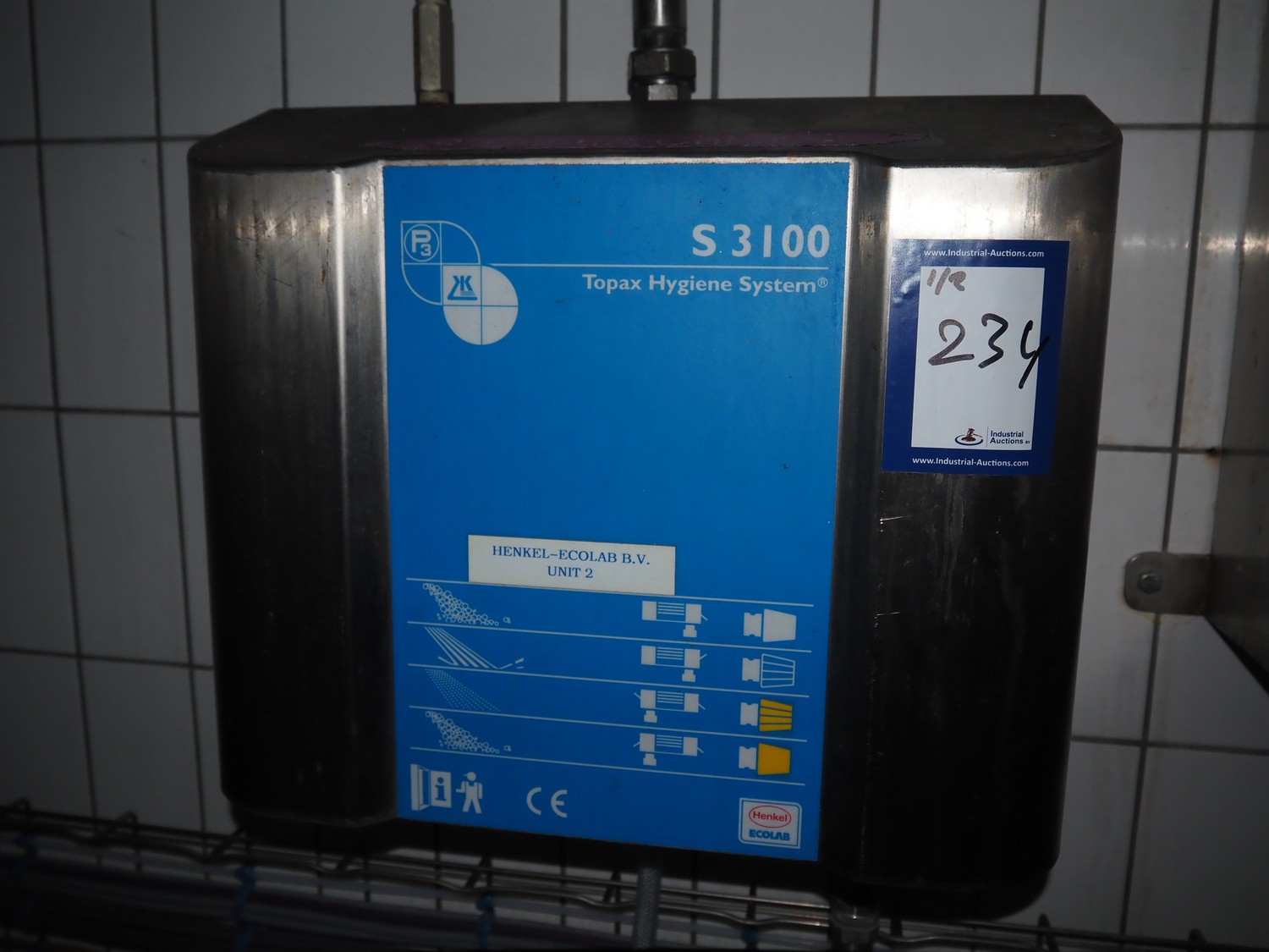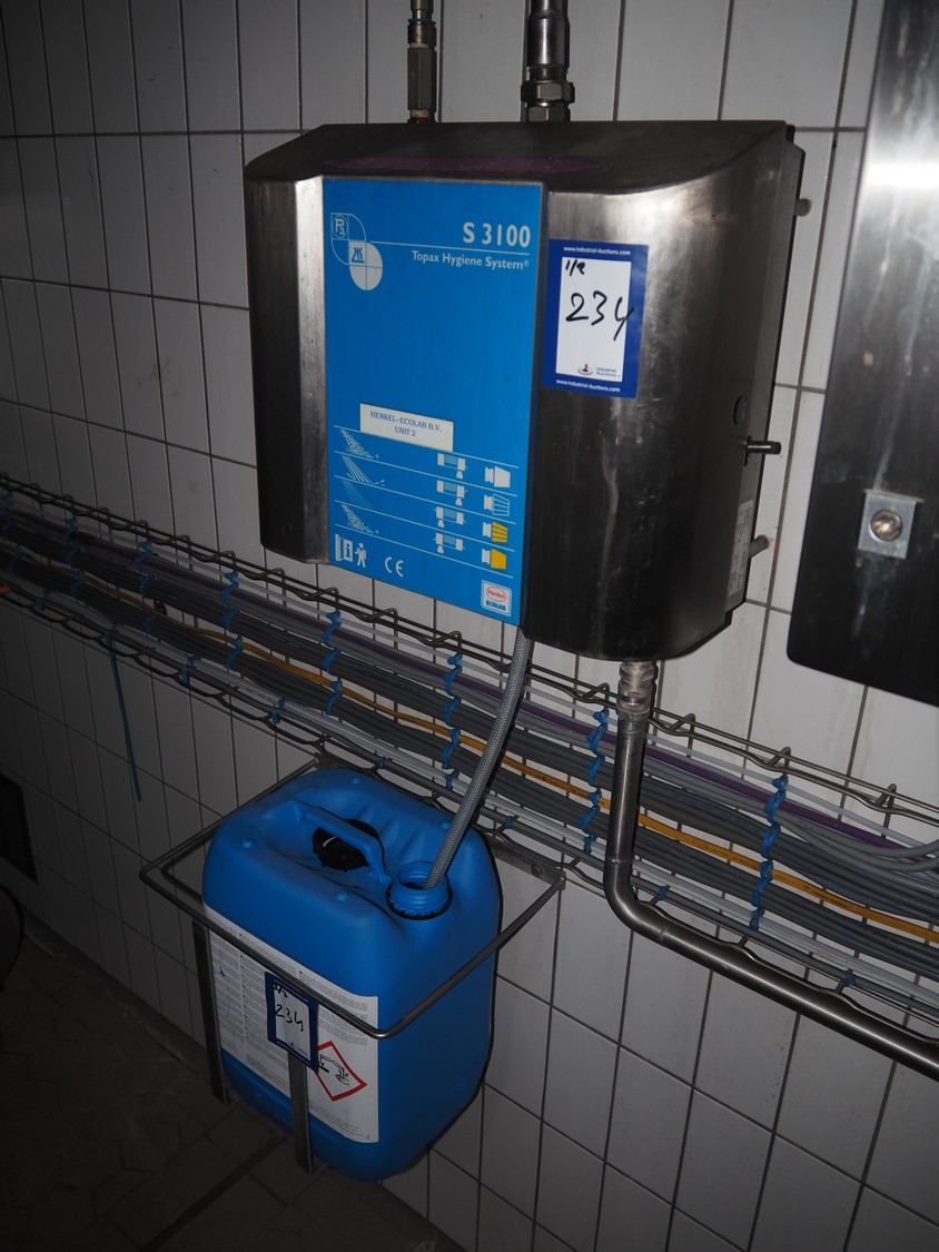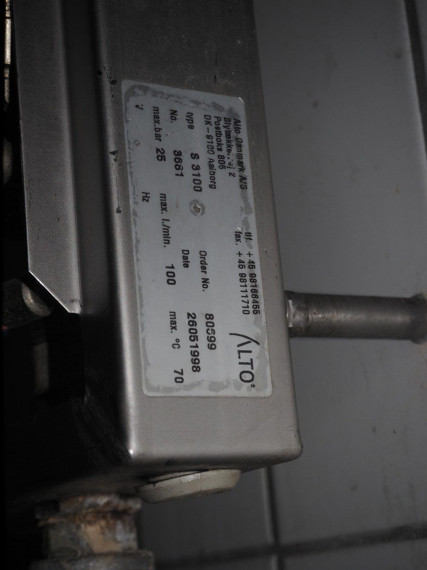 Alto Denmark A/S wall soap mixing unit, type: S 3100, number: 3681, year of construction: 26-05-1998, dimensions: 500 mm x 300 mm x 400 mm, including wall mounted s/s can holder.