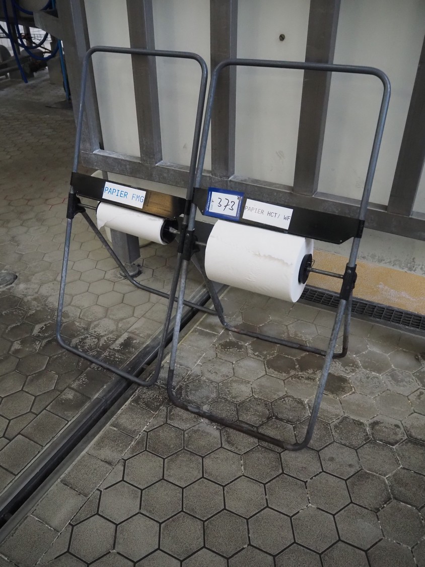 2 paper roll holders, dimensions: (2x) 450 mm x 450 mm x 900 mm.