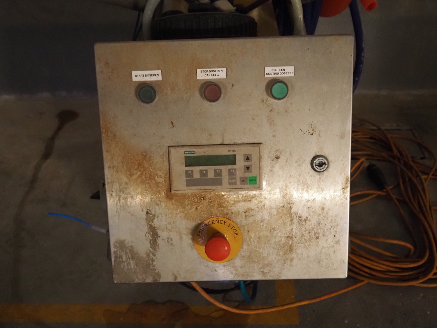 Mobile foam unit with IDEX Pump Technologies membrane pump, model: B1501KTBBOTK, serial number: 264742, dimensions: 1250 mm x 650 mm x 1000 mm.