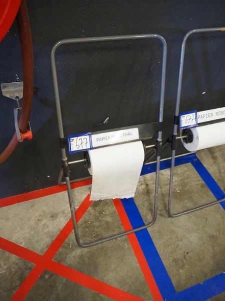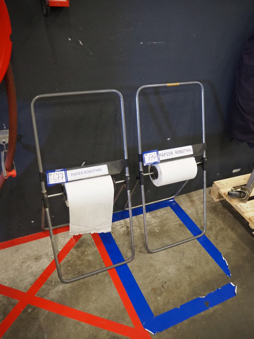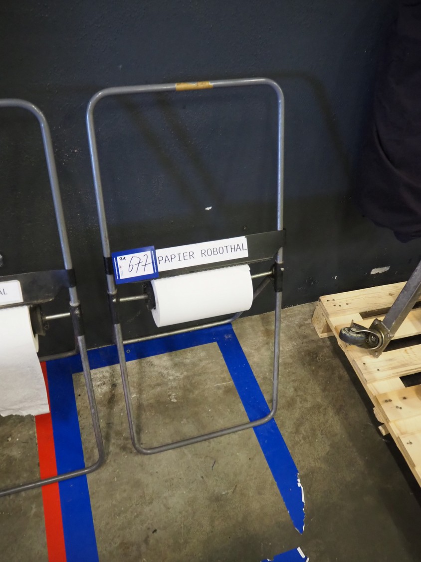 2 steel paper roll holders, dimensions: (2x) 450 mm x 400 mm x 900 mm.