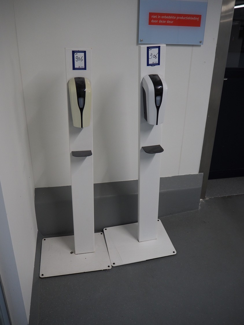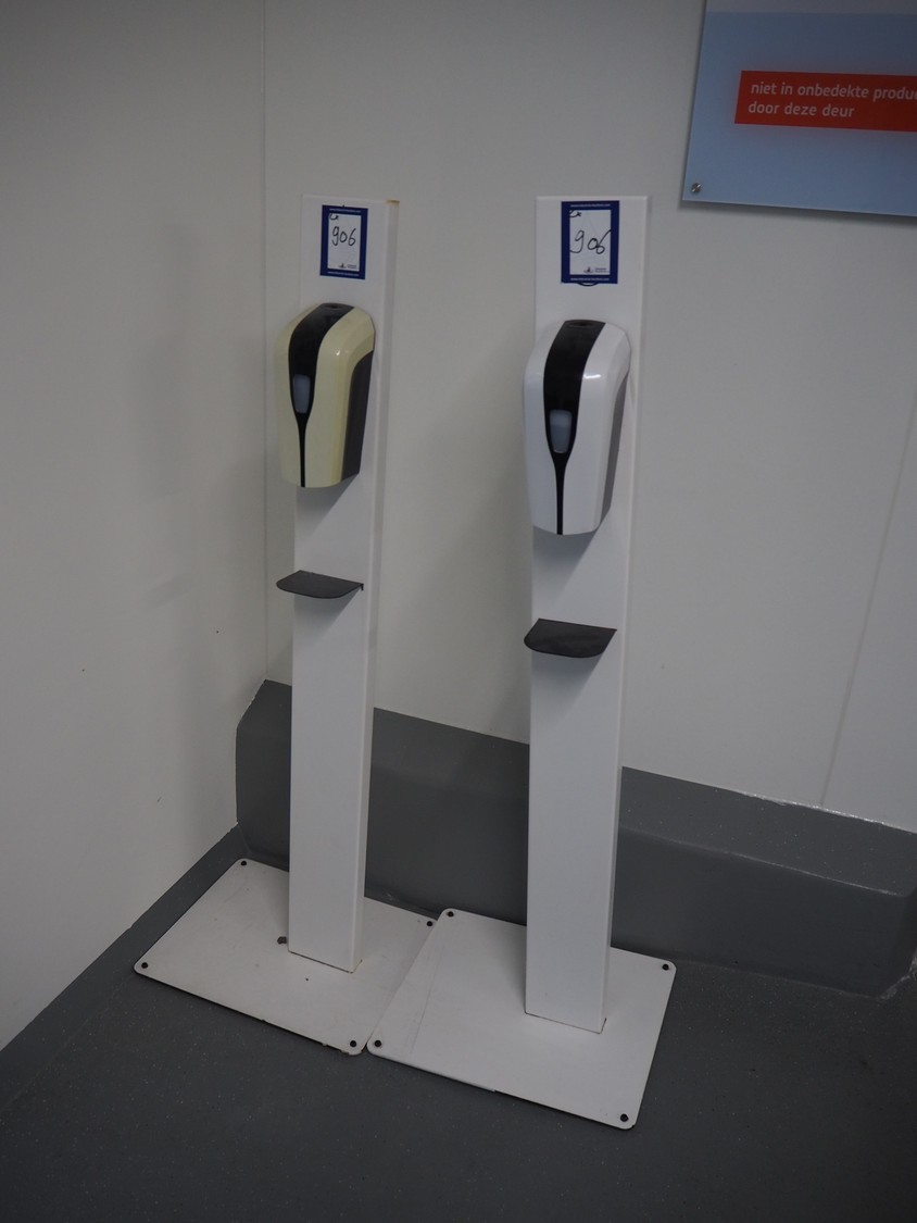 2 soap dispensers, dimensions: (2x) 490 mm x 400 mm x 1430 mm.