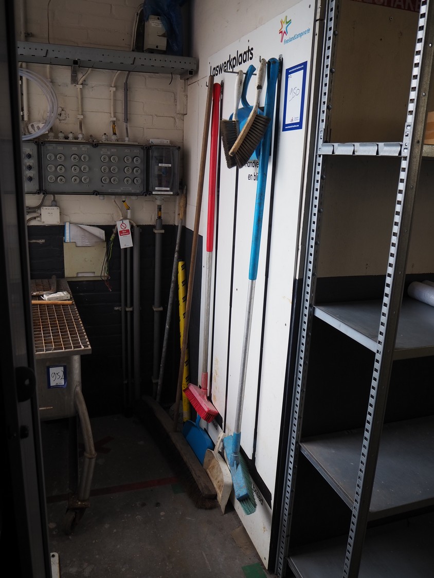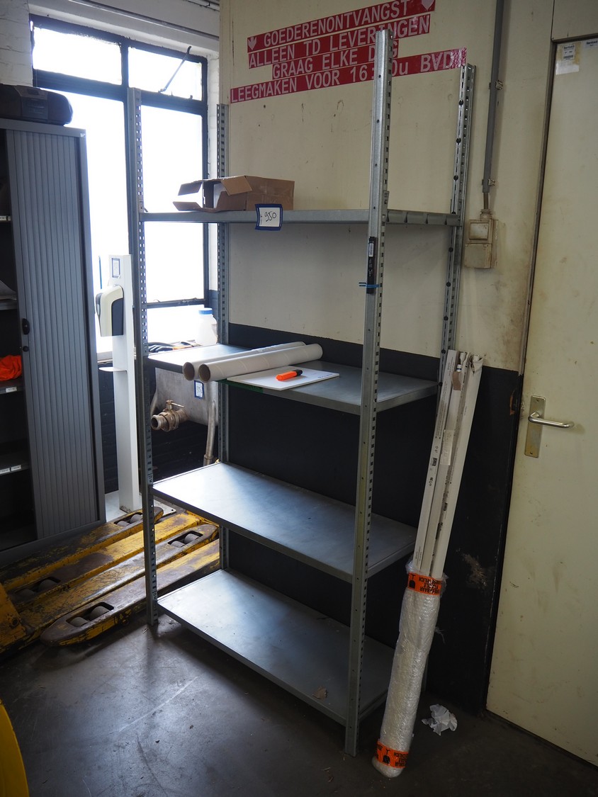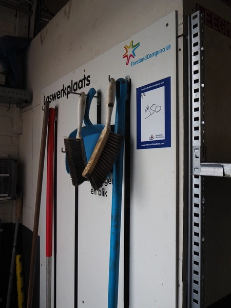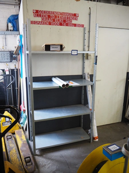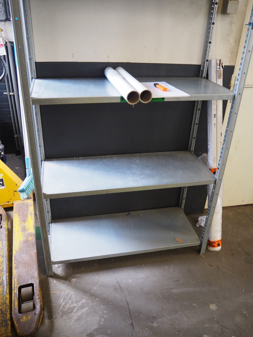 Plastic board with hygiene equipment, dimensions: 1000 mm x 2000 mm, steel rack, 4 floors, floor dimensions: 1000 mm x 400 mm, total dimensions: 1000 mm x 400 mm x 2000 mm.