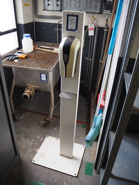 Soap dispenser, dimensions: 500 mm x 400 mm x 1400 mm.