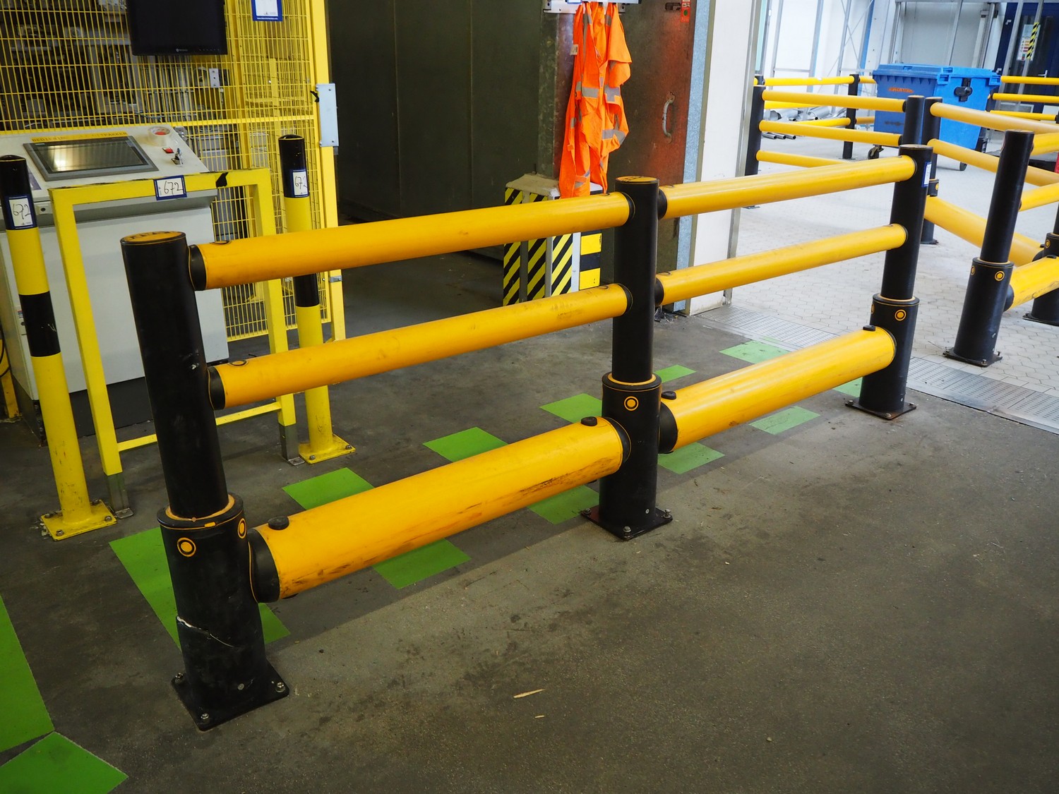2 A-Safe plastic protection frames, dimensions: 3100 mm x 130 mm x 1130 mm and 2300 mm x 130 mm x 1130 mm.