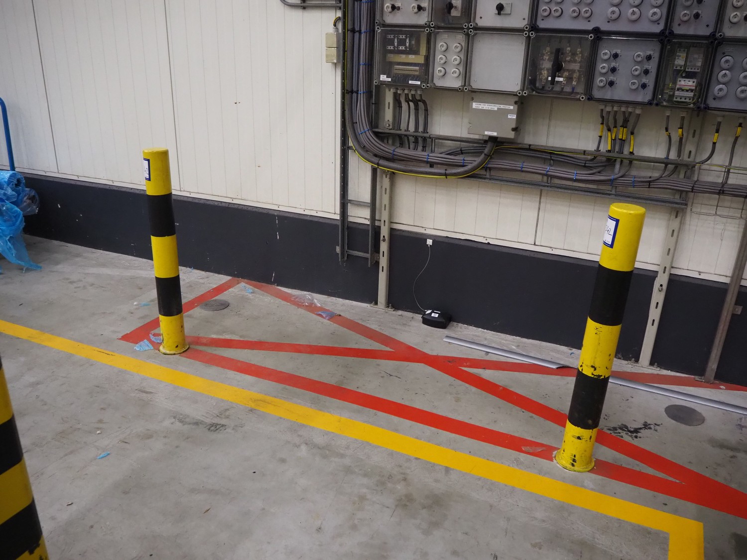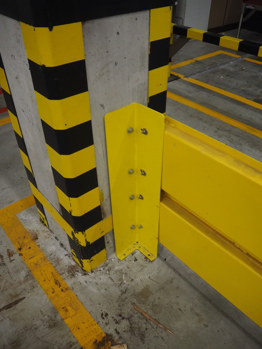 Steel protection frames, dimensions: 2050 mm x 250 mm x 600 mm and (2x) Ø 110 mm x 1000 mm.