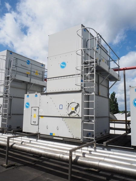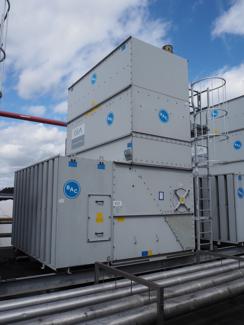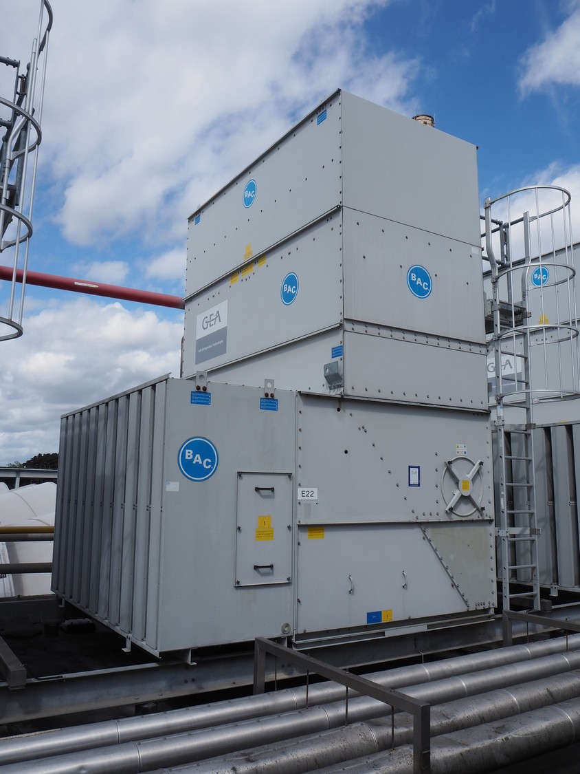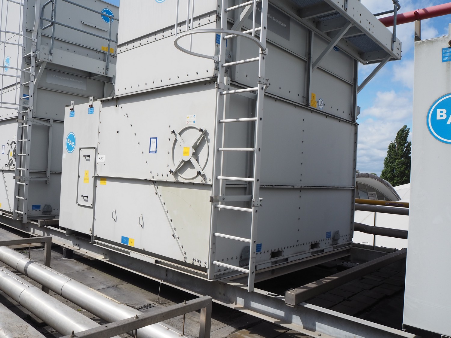 Baltimore Aircoil International evaporative condenser, model: VXC-250, serial number: H160220702, fan overall efficiency: 53.79%, dimensions: 3600 mm x 3530 mm x 5000 mm.