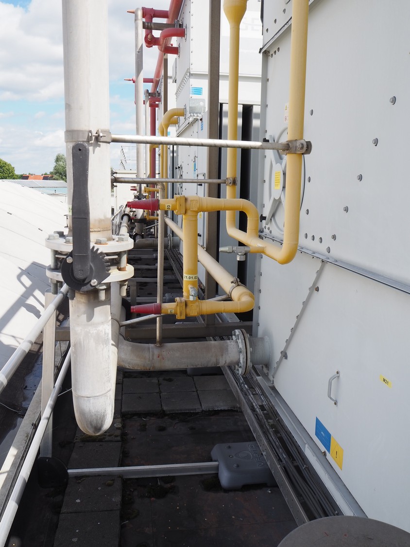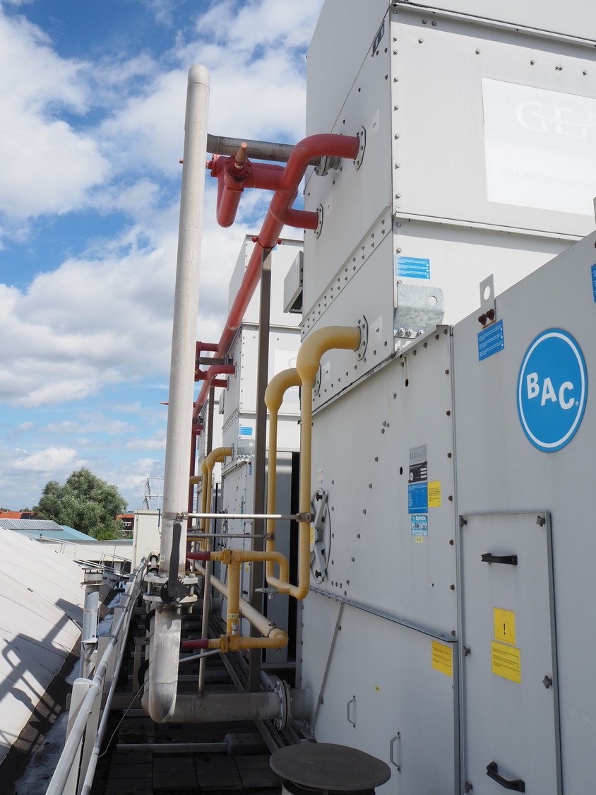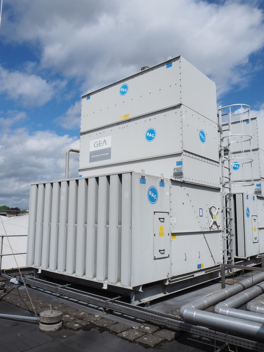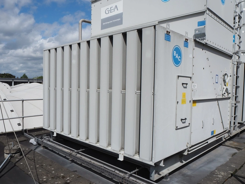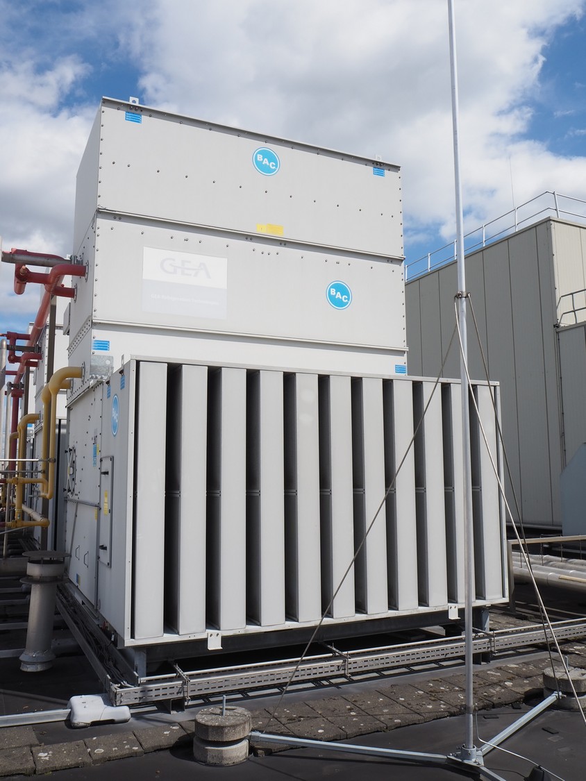 Baltimore Aircoil International evaporative condenser, model: VXC-250, serial number: H160220701, fan overall efficiency: 53.79%, dimensions: 3600 mm x 3530 mm x 5000 mm.