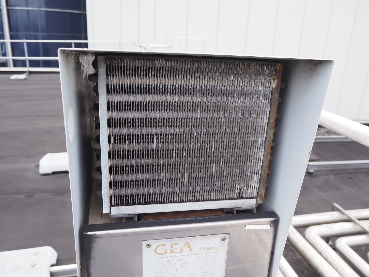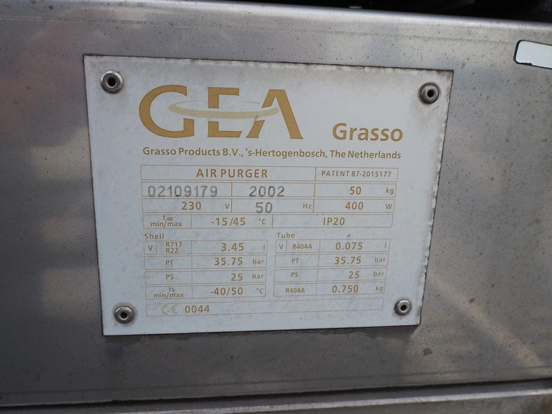 Grasso Products B.V. automatic air purger, number: 02109179, year of construction: 2002, 230 V, 50 Hz, 400 W, minimum temperature: -15 °C, maximum temperature: 45 °C, dimensions: 1000 mm x 1000 mm x 1250 mm.