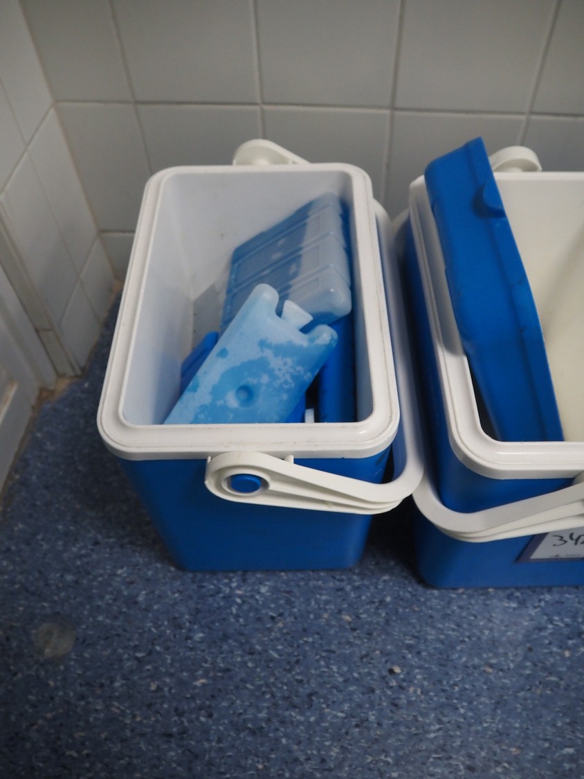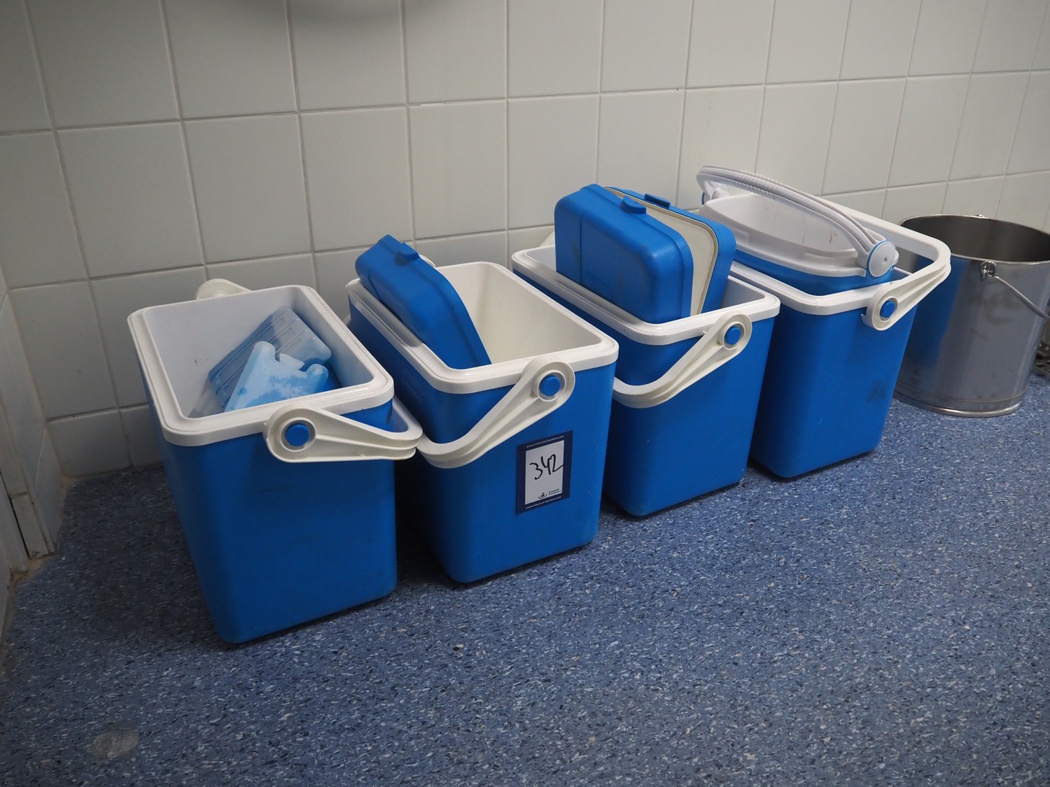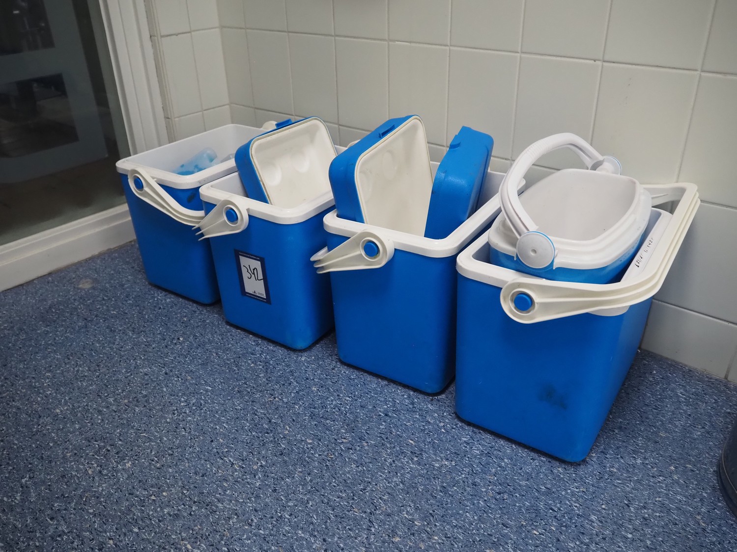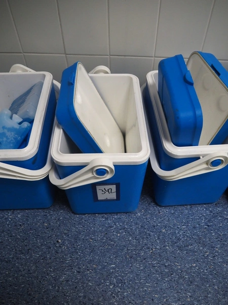 5 cool boxes, dimensions: (5x) 410 mm x 250 mm x 350 mm.