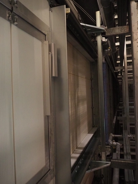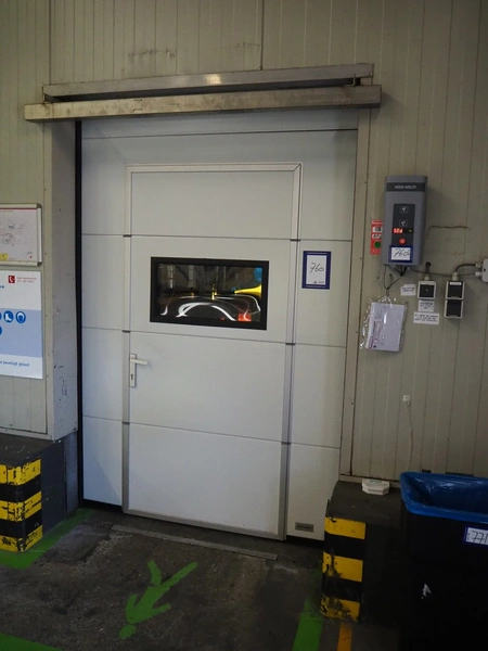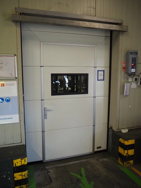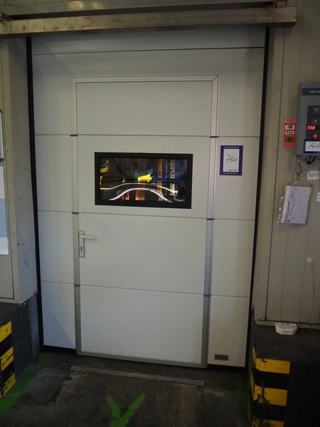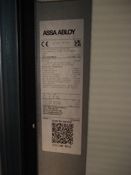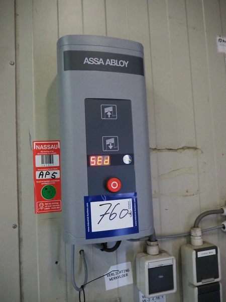 Assa Abloy electric overhead door, type: CH1042P, serial number: 112302332, year of construction: 07/02/2022, dimensions door: 1600 mm x 1950 mm, rail length: 5000 mm, dimensions control cabinet: 200 mm x 100 mm x 350 mm.