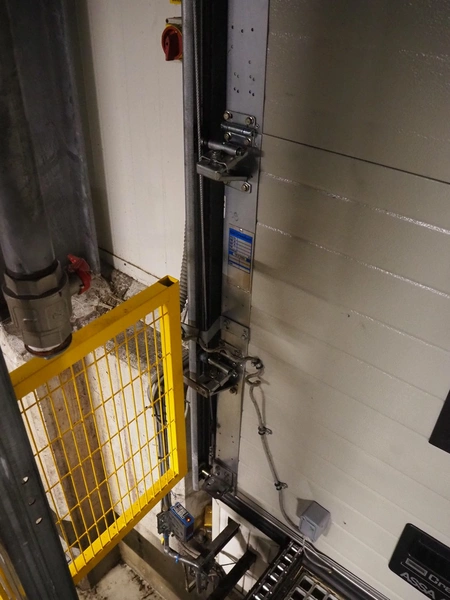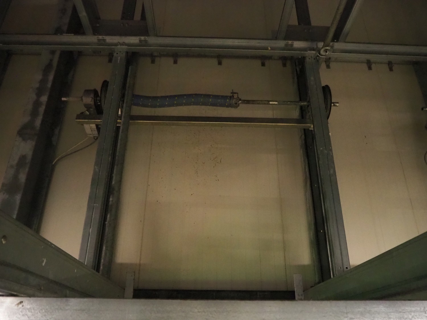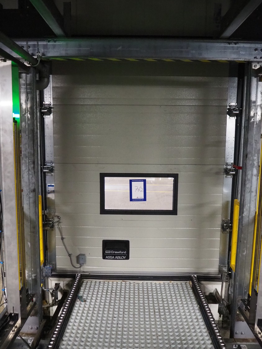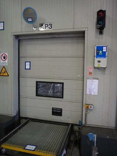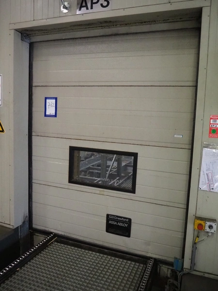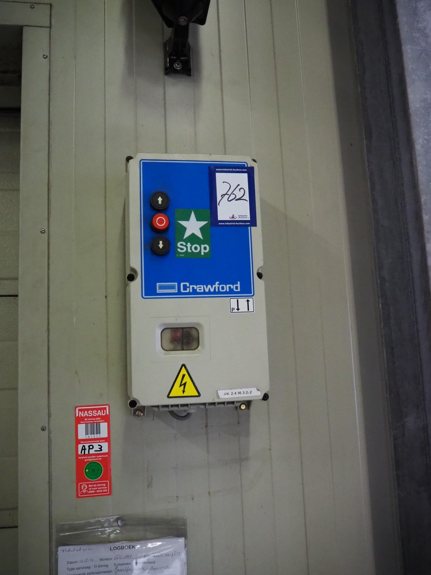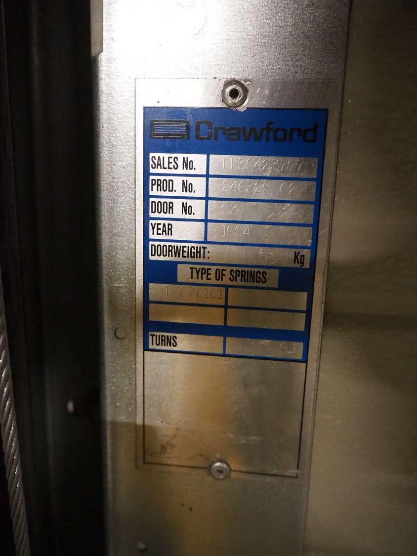 Crawford electric overhead door, type: C3, year of construction: 1994, dimensions door: 1600 mm x 1950 mm, rail length: 5000 mm, dimensions control cabinet: 200 mm x 160 mm x 370 mm.