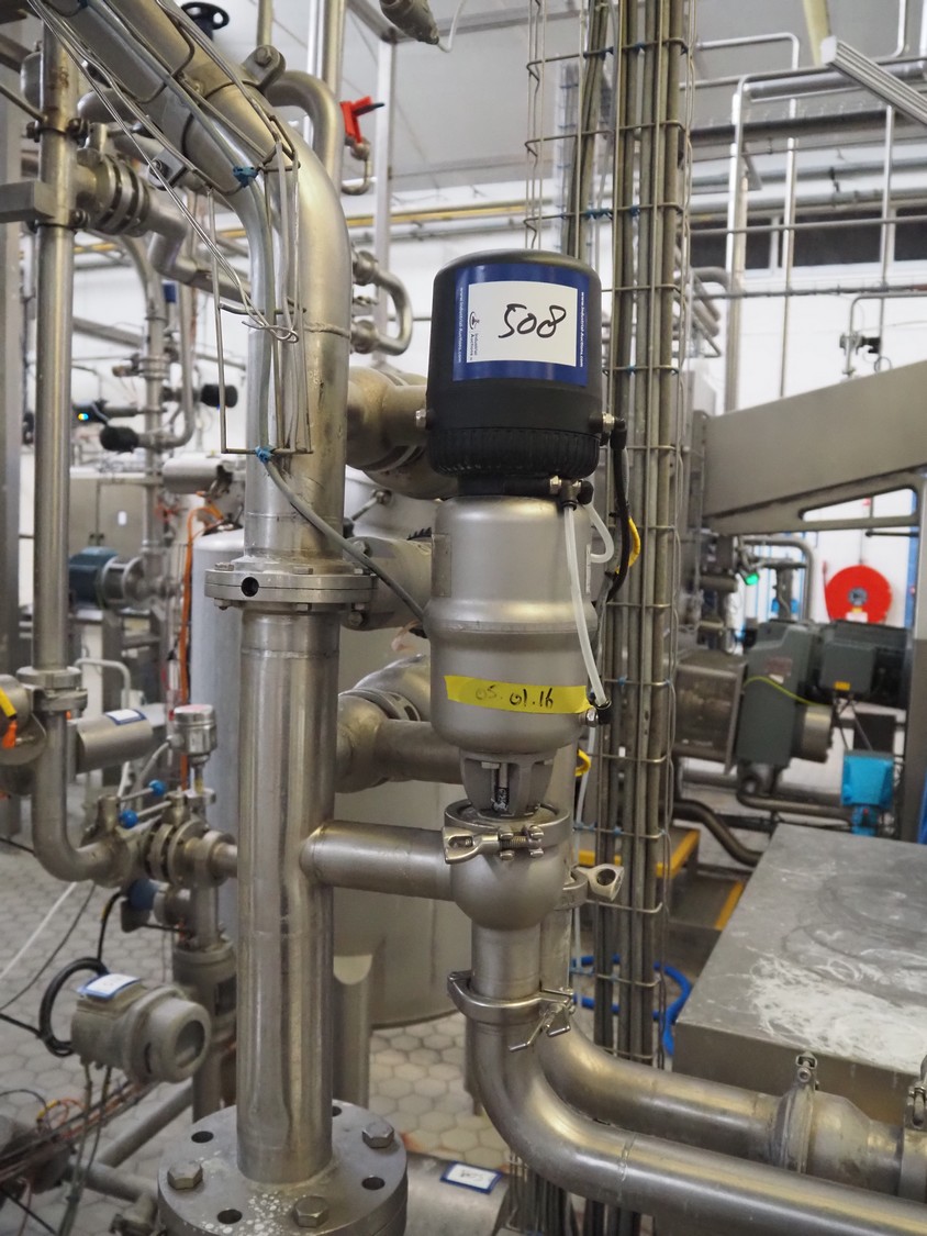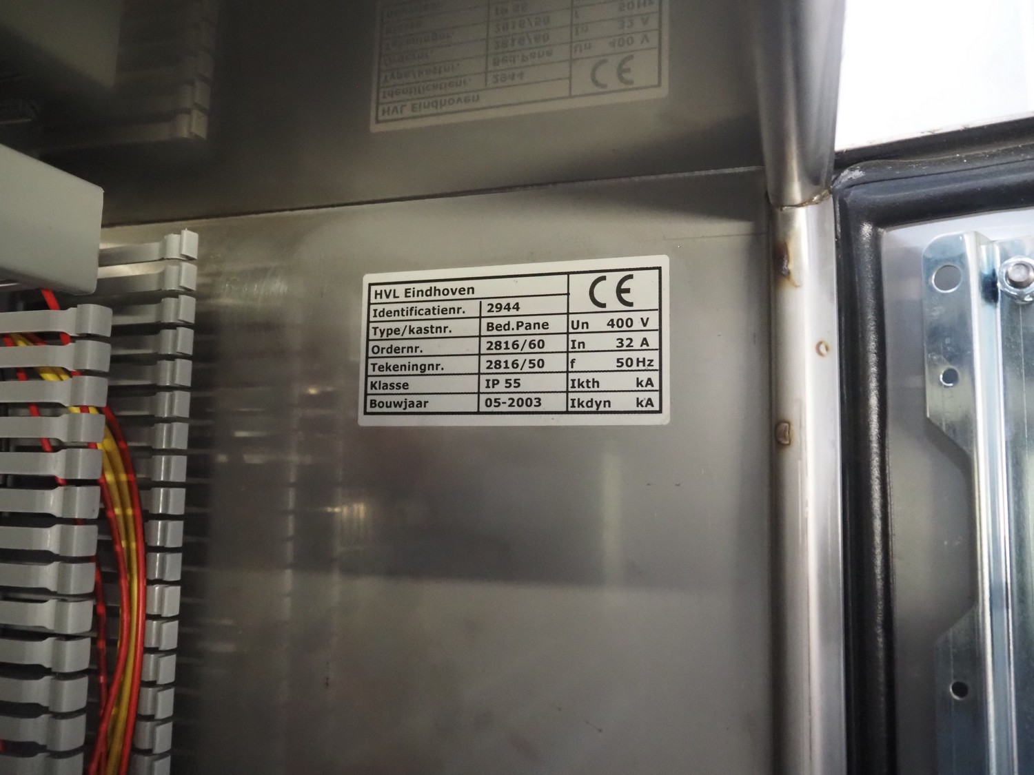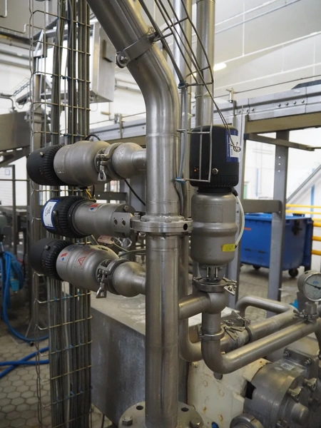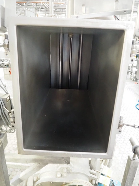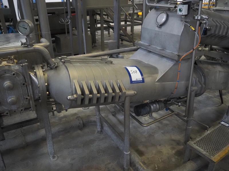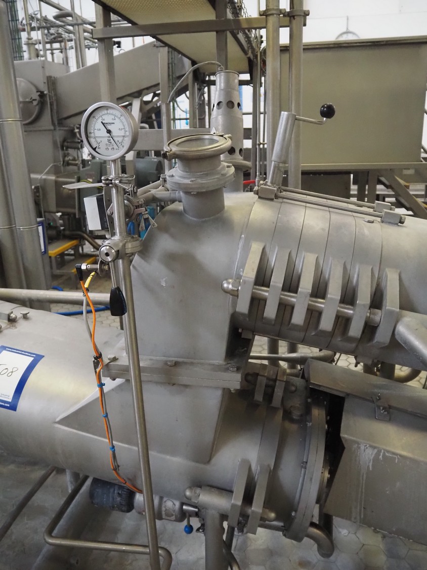 APV butter reworker, consisting of: double screw reworker, clearance: 600 mm x 400 mm, Waukescha Cherry Burrel lobe pump, model: 134, serial number: 243121, APV centrifugal pump, various valves, total dimensions: 5100 mm x 1900 mm x 3700 mm. Including s/s platform, working height: 1180 mm, total dimensions: 3200 mm x 700 mm x 2200 mm and 2 switch cabinets.