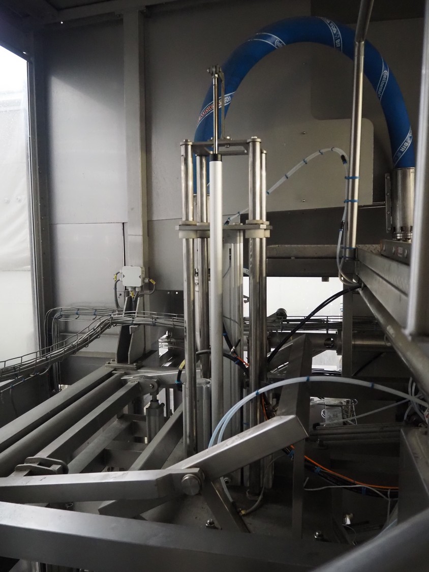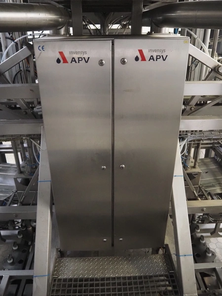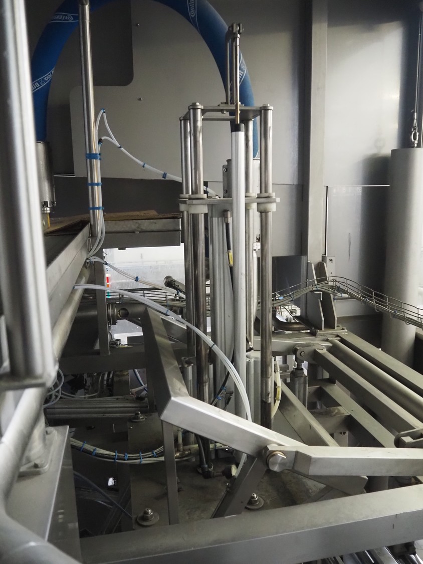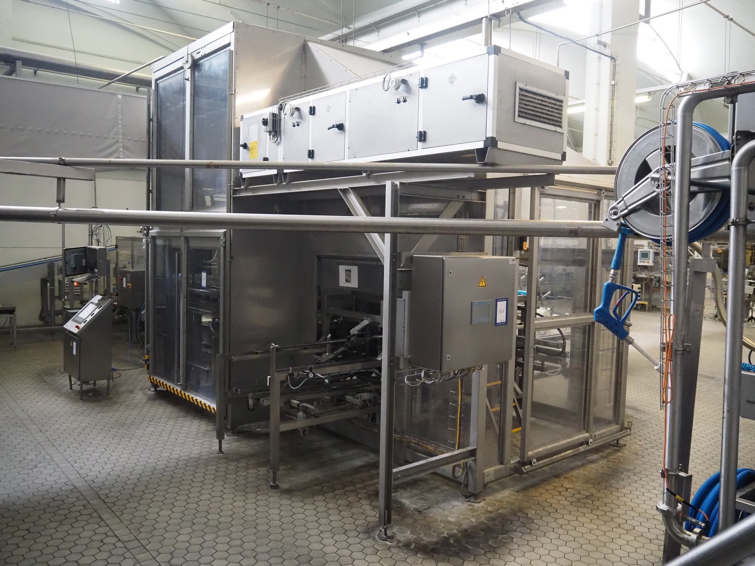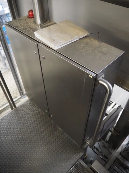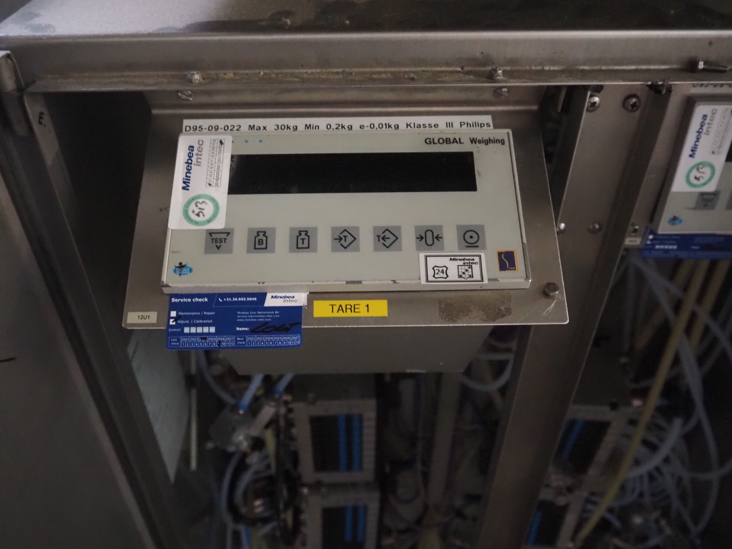 APV double butter bulk packaging machine, type: Bulk Packer FMG+, serial number: 5204003, capacity: 10.000 kg/h, 25 kg carton boxes, maximum weighing capacity: 30 kg, minimum weighing capacity: 0.2 kg, clearance box infeed: 670 mm x 550 mm, filling dye: 380 mm x 280 mm, total dimensions: 7200 mm x 4800 mm x 4300 mm, dimensions switch cabinets: (2x) 600 mm x 500 mm x 1250 mm.