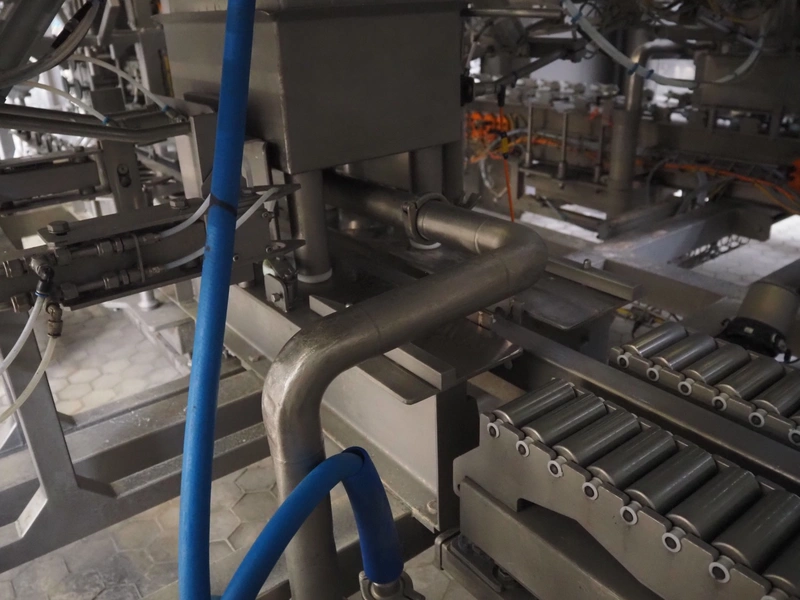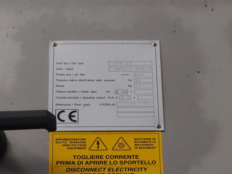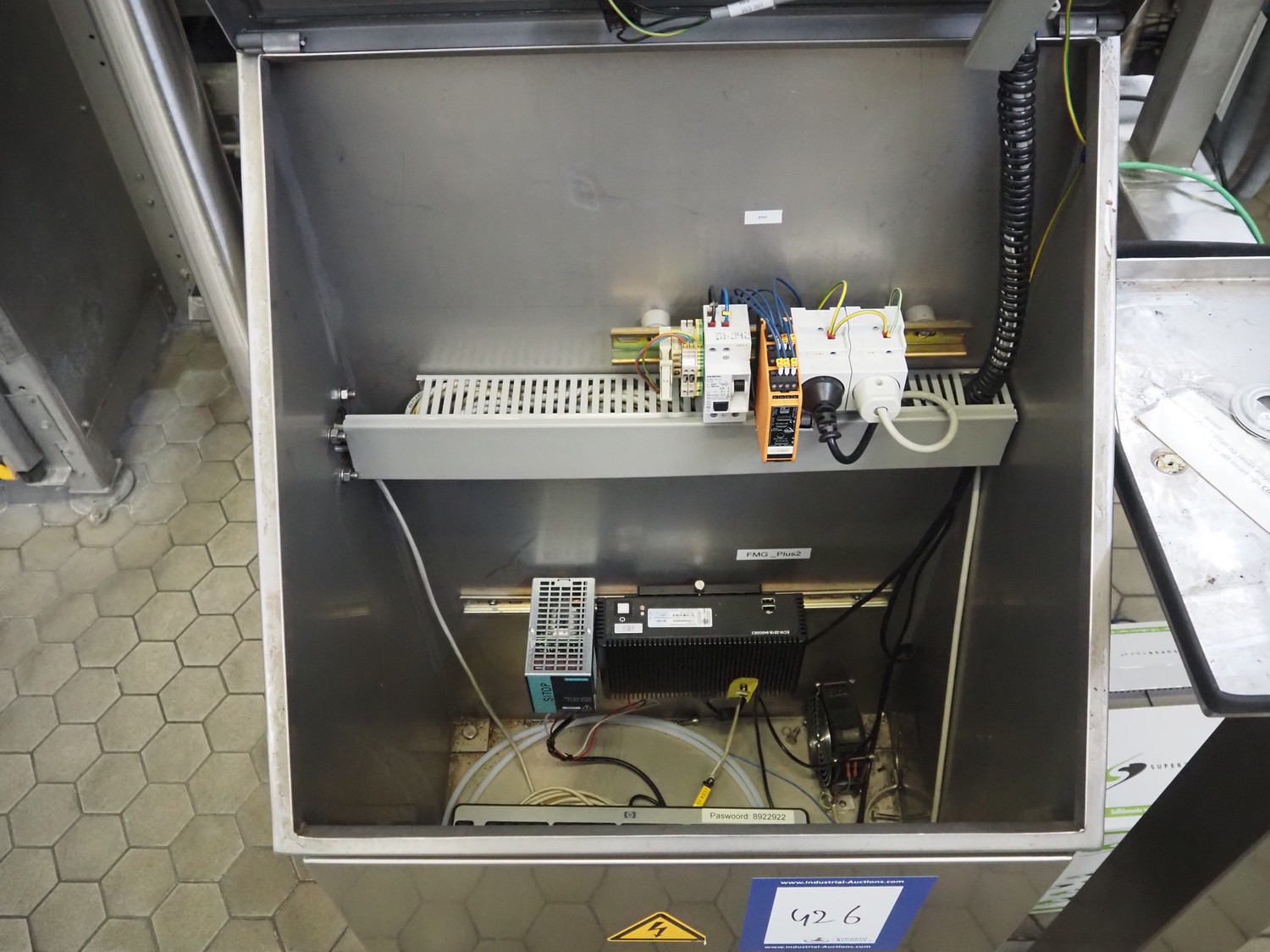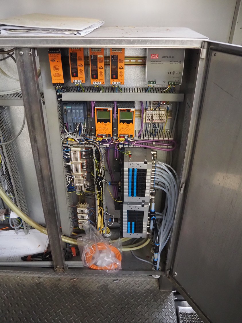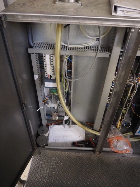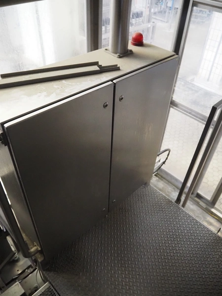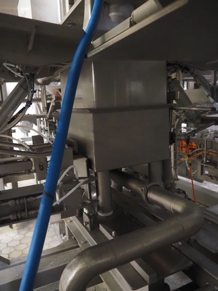 APV double butter bulk packaging machine, type: Bulk Packer FMG+, serial number: 5204003, capacity: 10.000 kg/h, 25 kg carton boxes, maximum weighing capacity: 30 kg, minimum weighing capacity: 0.2 kg, clearance box infeed: 670 mm x 550 mm, filling dye: 380 mm x 280 mm, total dimensions: 7200 mm x 4800 mm x 4300 mm, dimensions switch cabinets: (2x) 600 mm x 500 mm x 1250 mm.