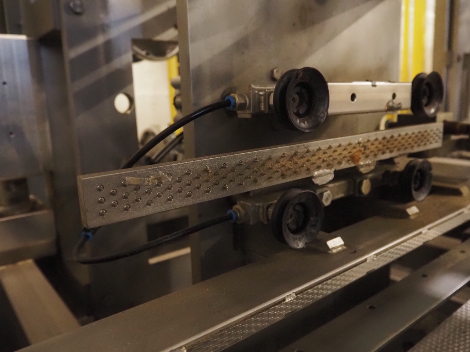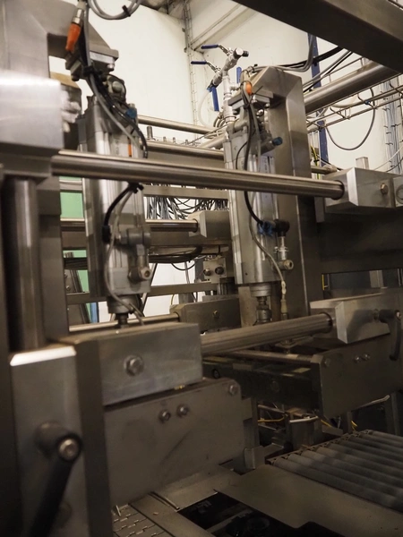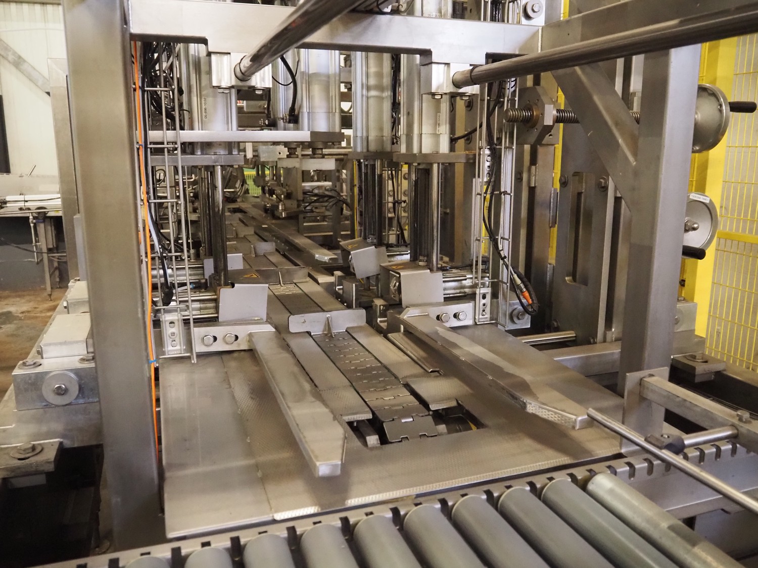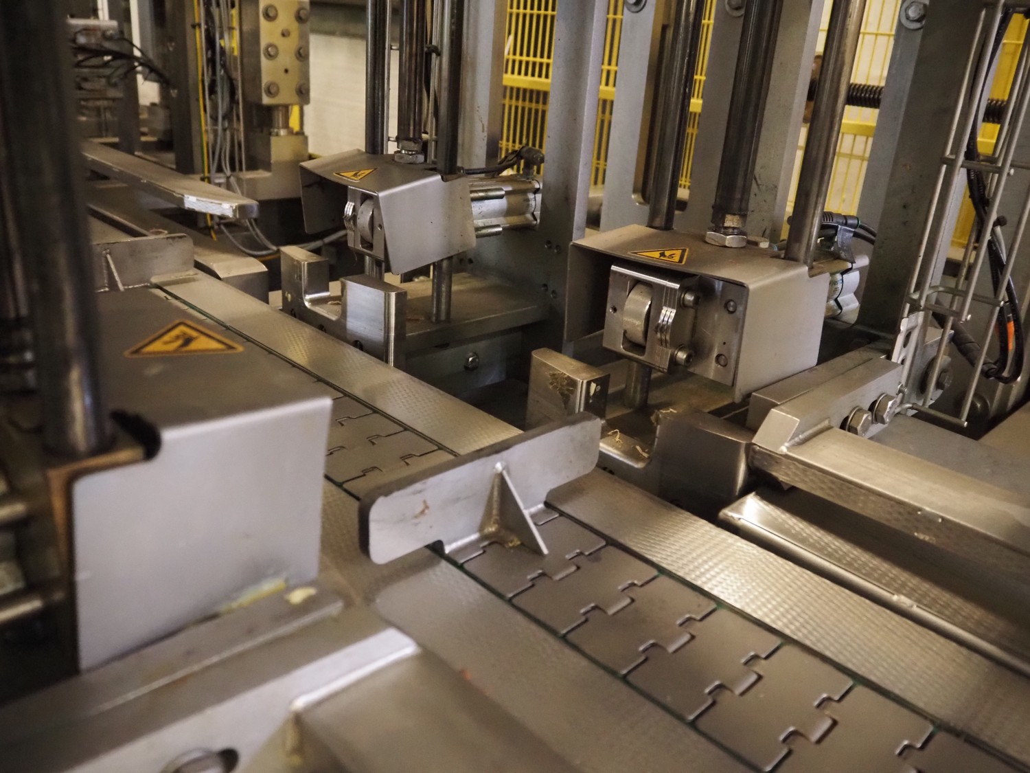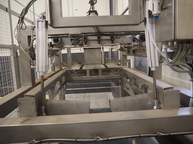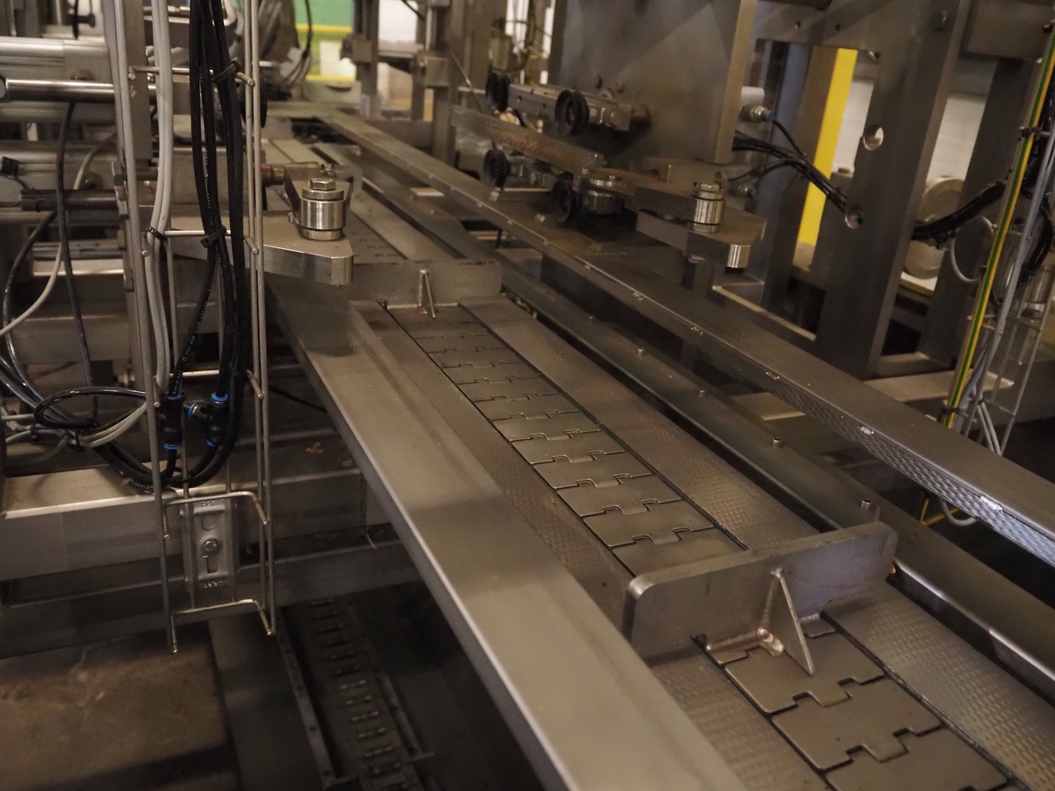 - Carton de-packaging machine, s/s belt width dividers, belt width: 80 mm, divider height: 50 mm, distance between dividers: 560 mm, total dimensions: 5900 mm x 2500 mm x 2400 mm;
