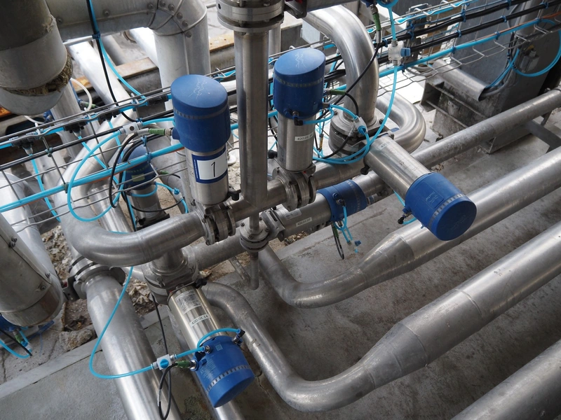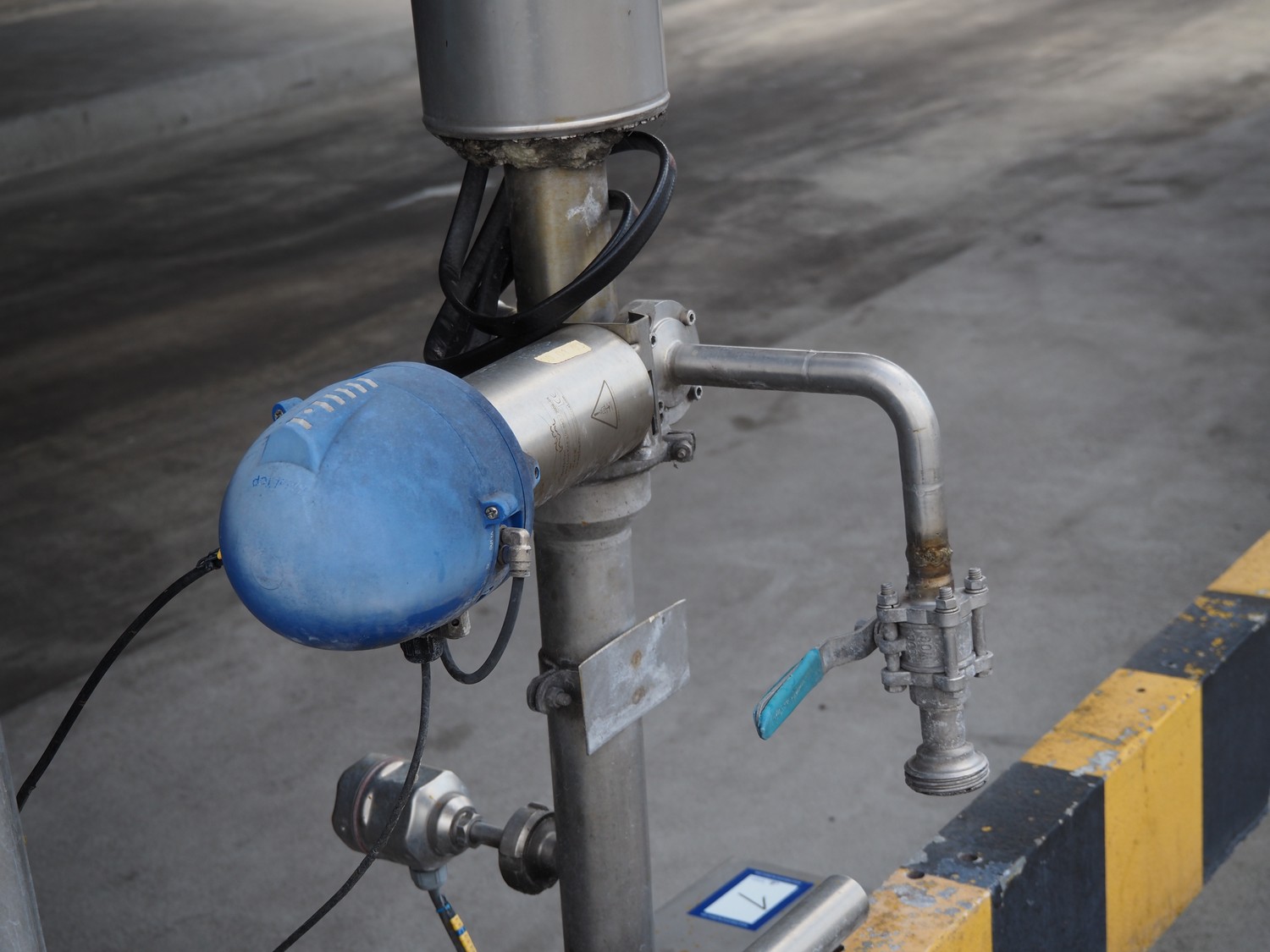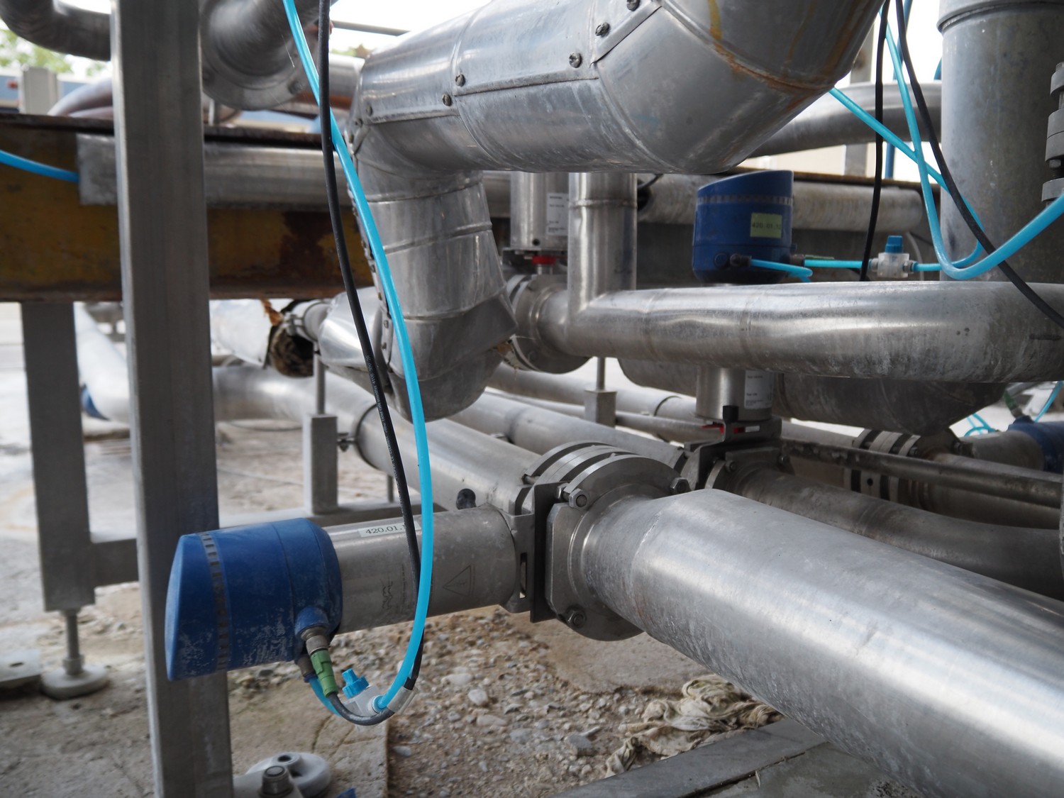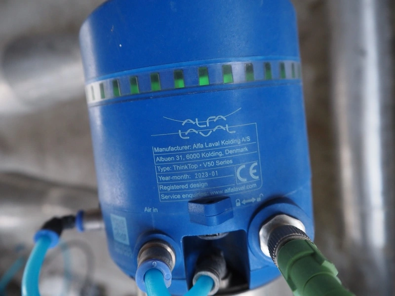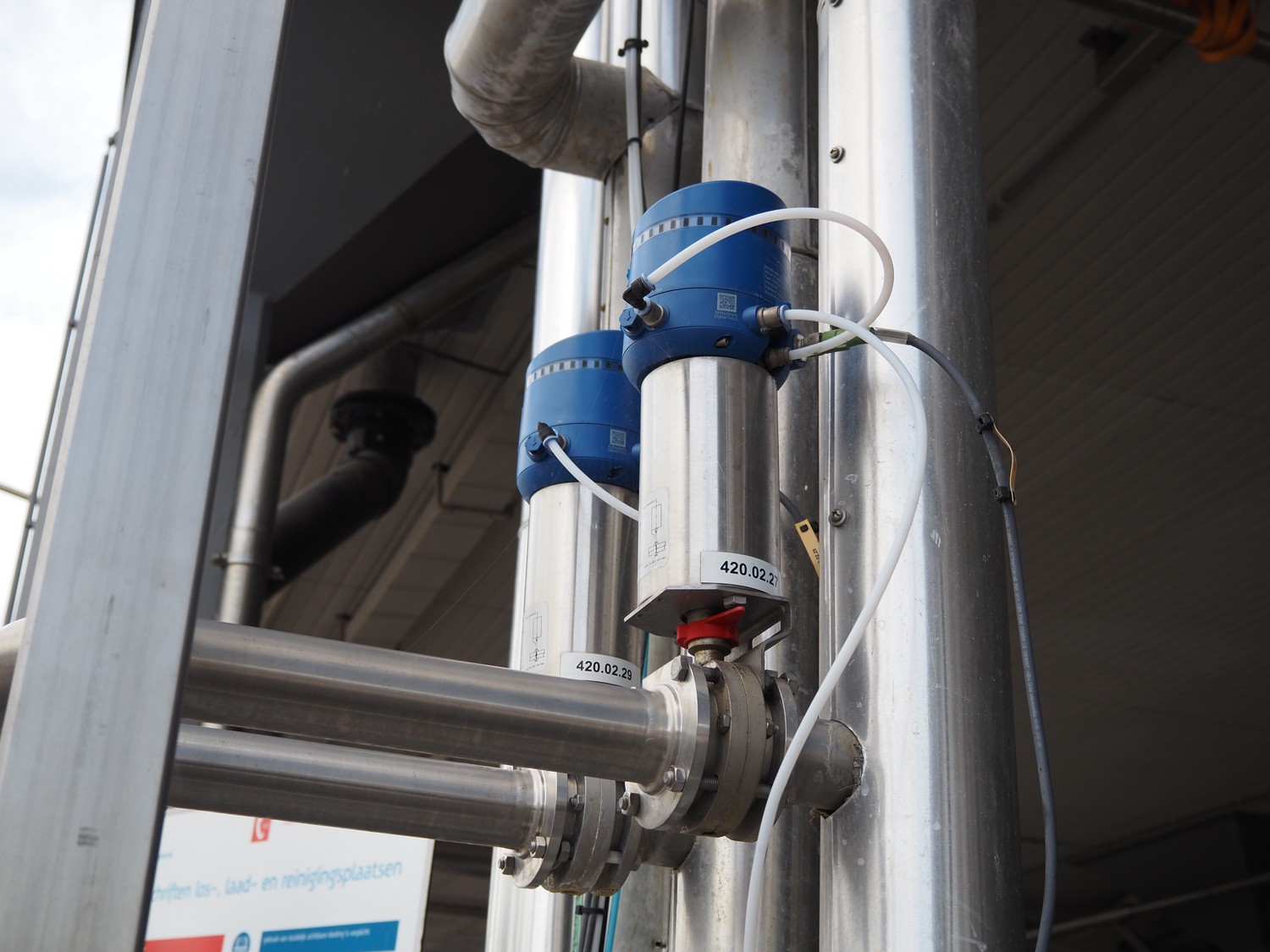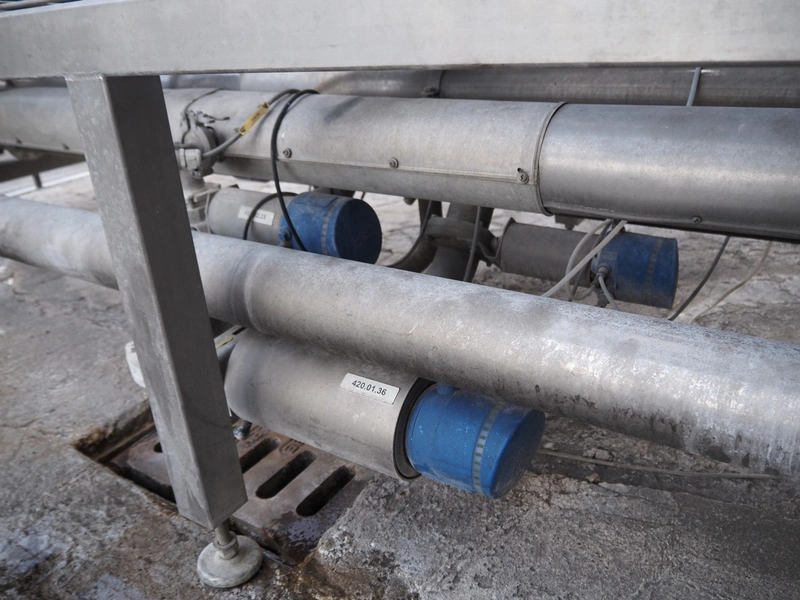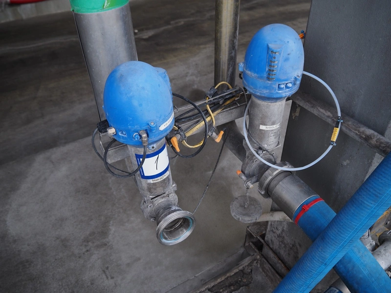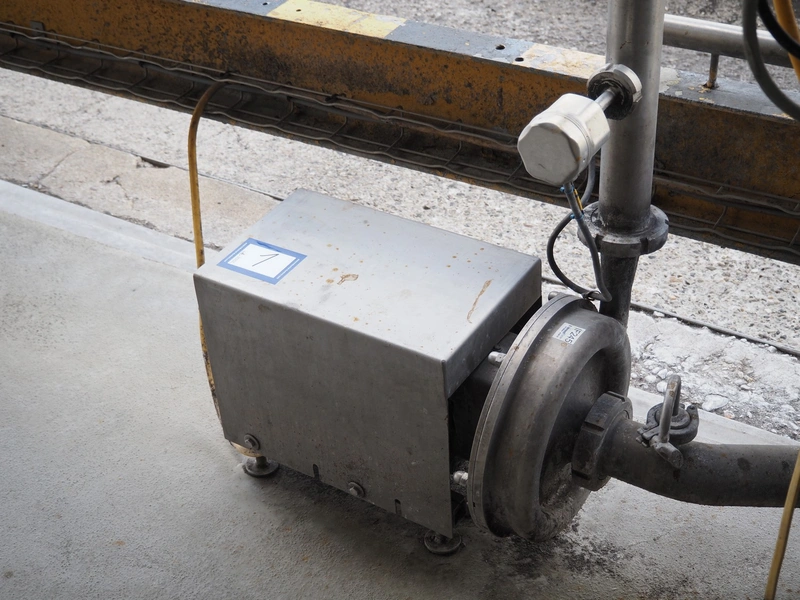 Raw milk unloading station with various hoses, s/s pipes, switch cabinets and valves, total dimensions: 5300 mm x 3100 mm x 2500 mm.