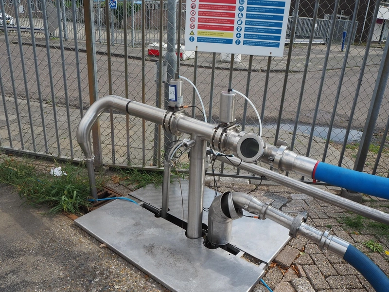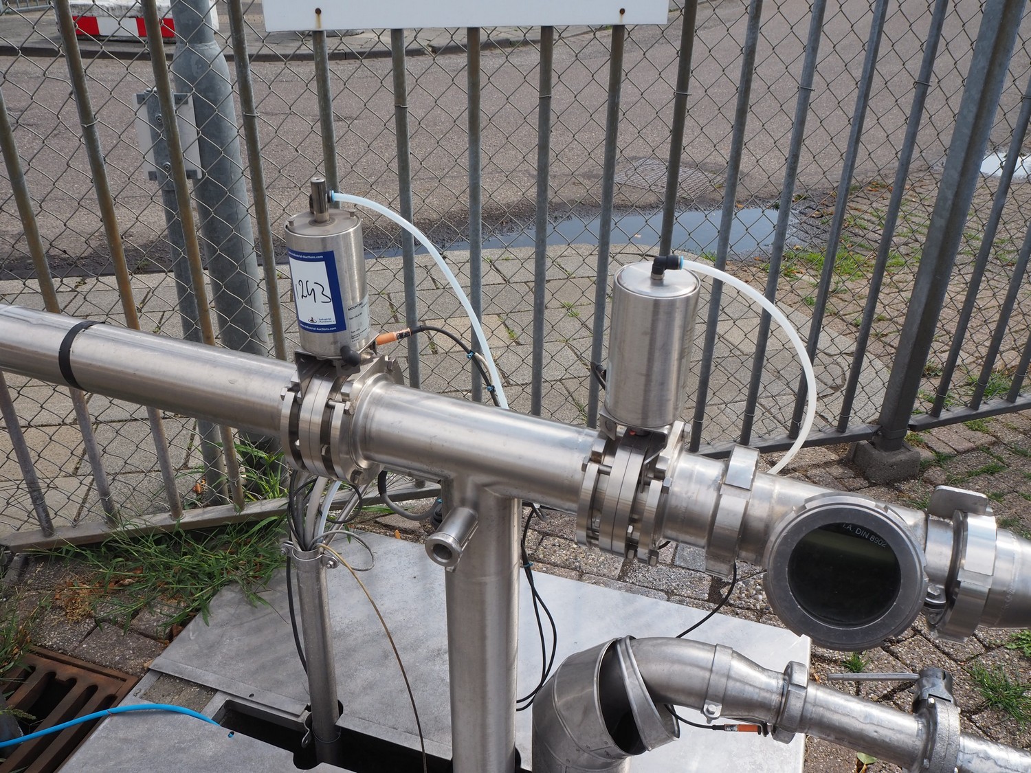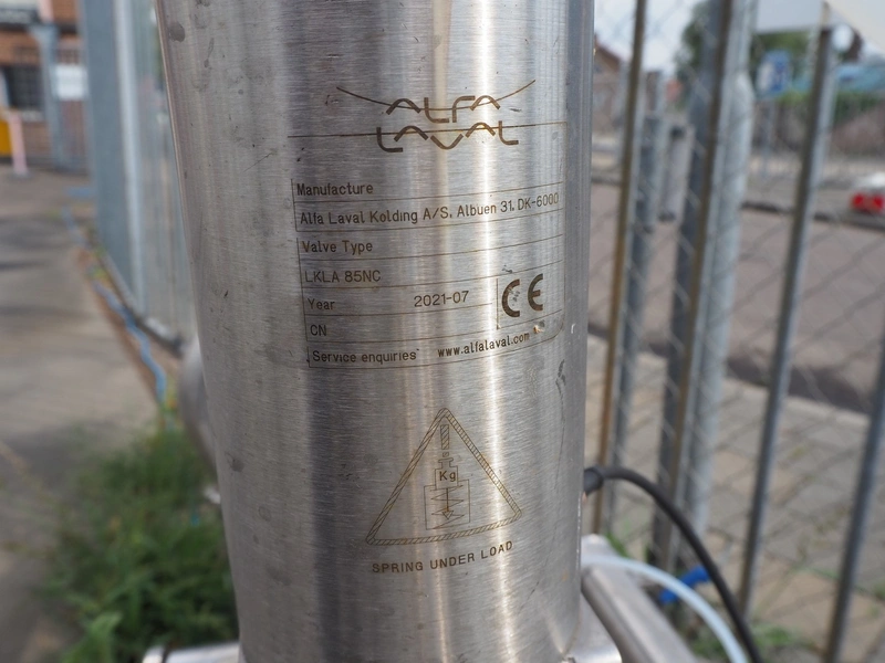 2 Alfa Laval valves and hose, dimensions: 500 mm x 300 mm x 1000 mm.