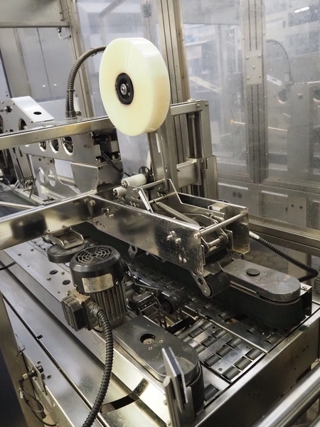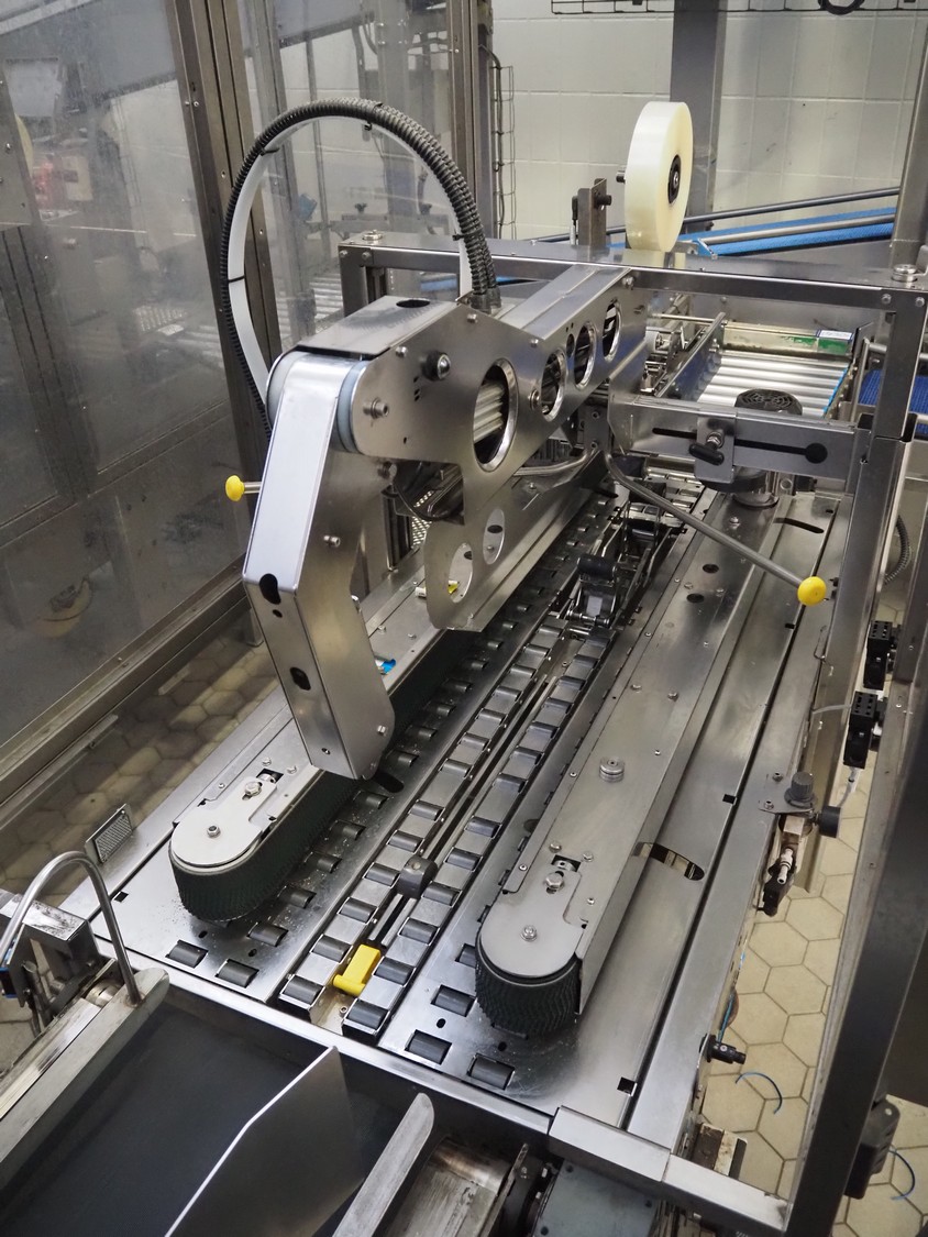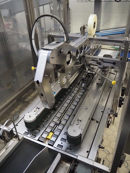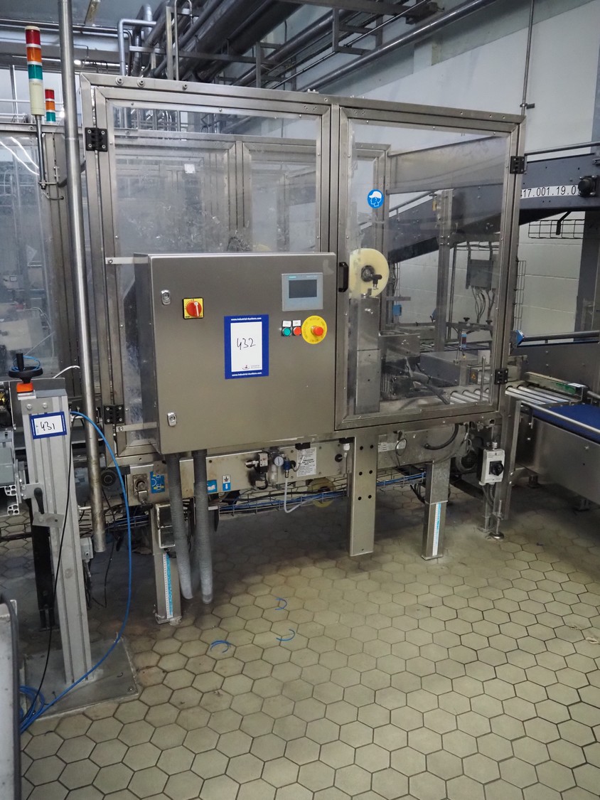 Siat box closing machine, model: SM11 INOX, serial number: SEB000084050013, year of construction: 2018, 400 V, 3 Ph, 50 Hz, 1.08 A, 260 W, dimensions: 2000 mm x 1350 mm x 2400 mm.