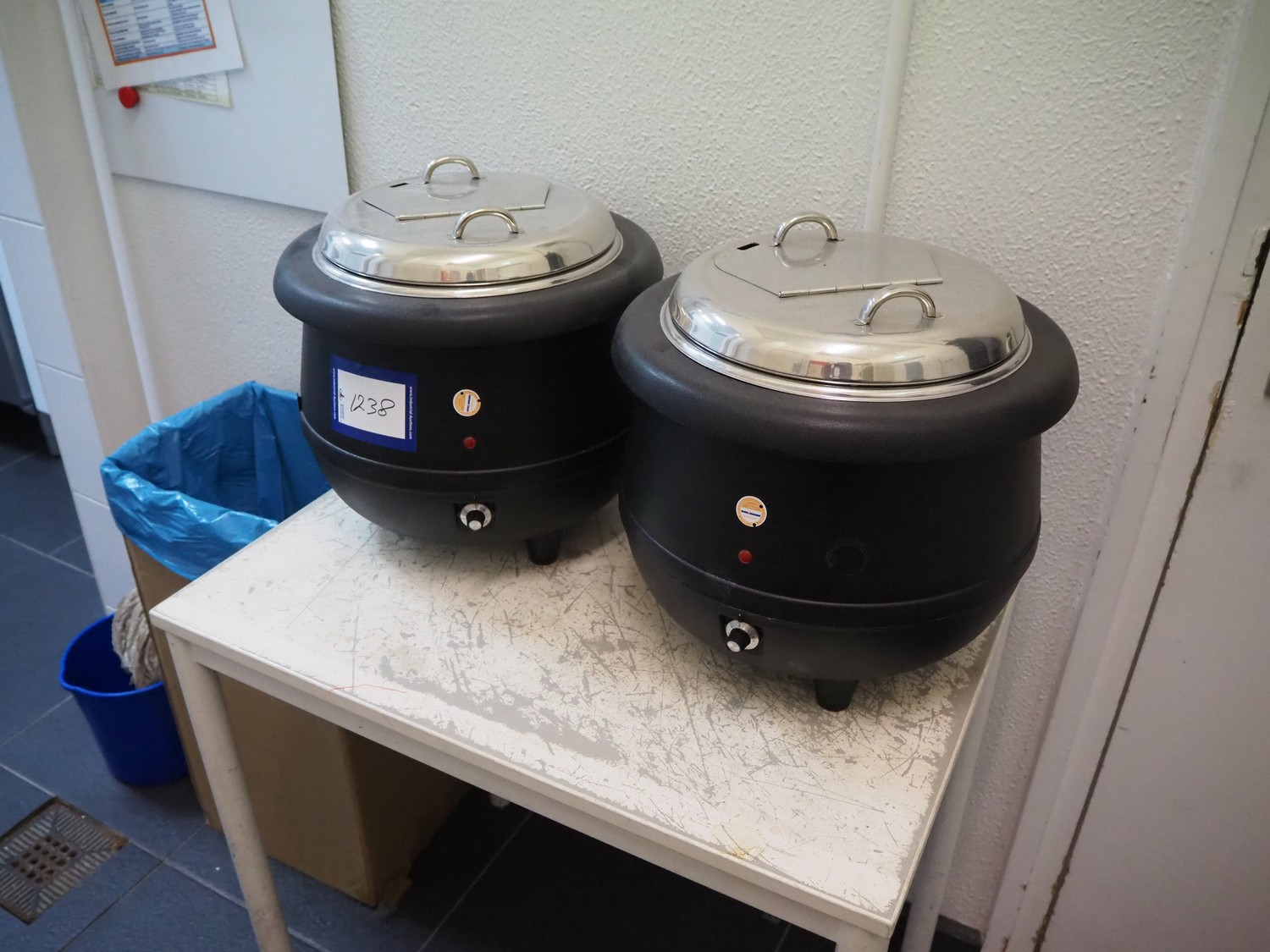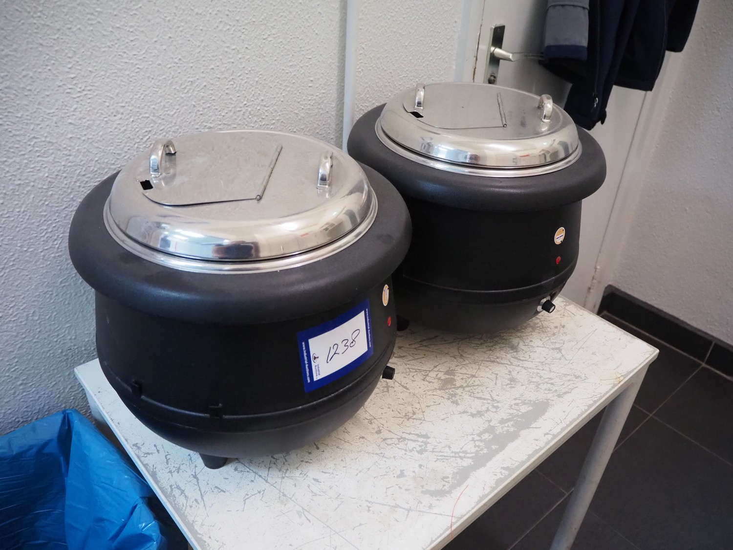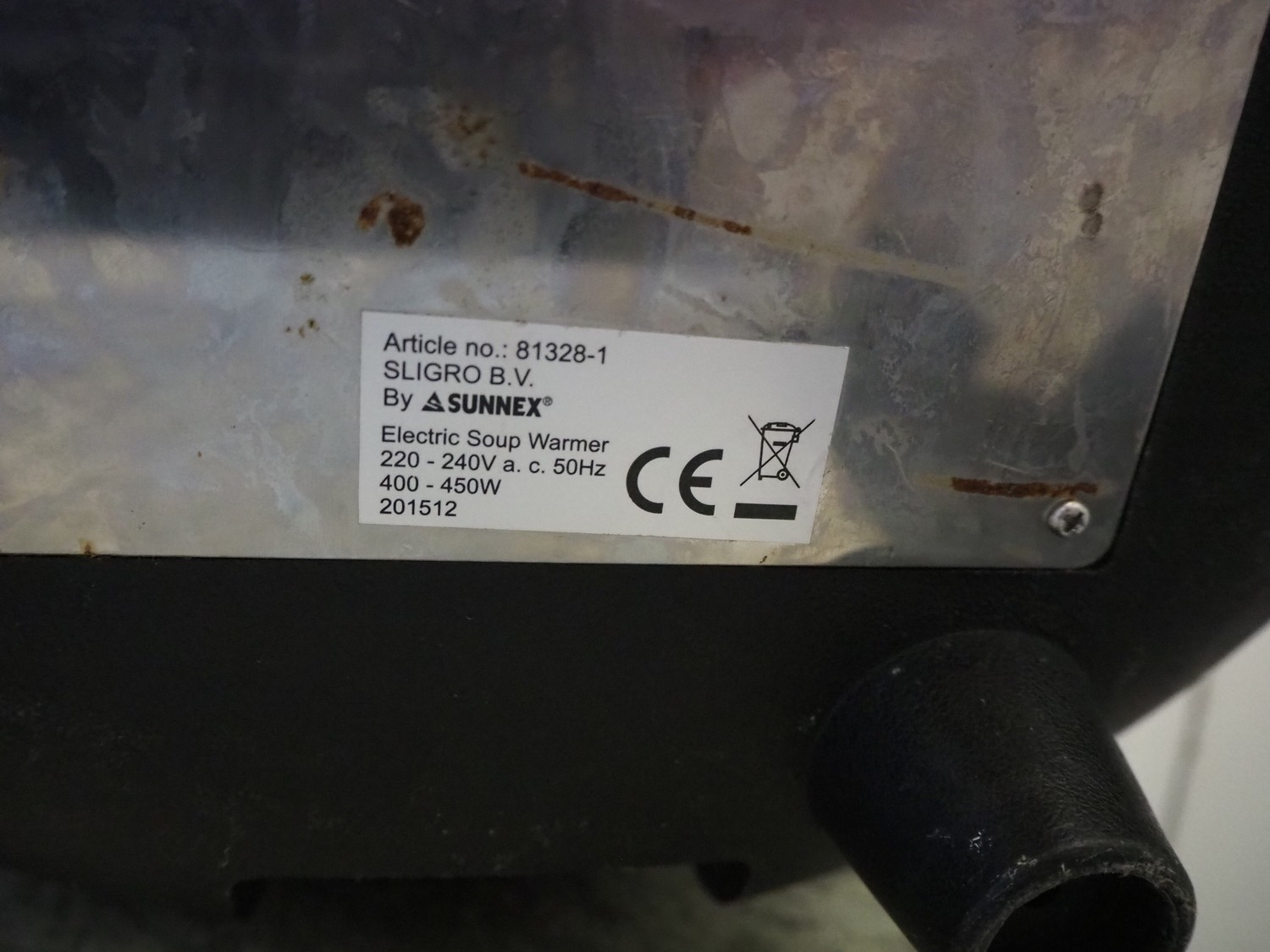 2 Sunnex electrical soup warmers, 220-240 V, 50 Hz, 400-450 W, dimensions: (2x) Ø 380 mm x 350 mm.