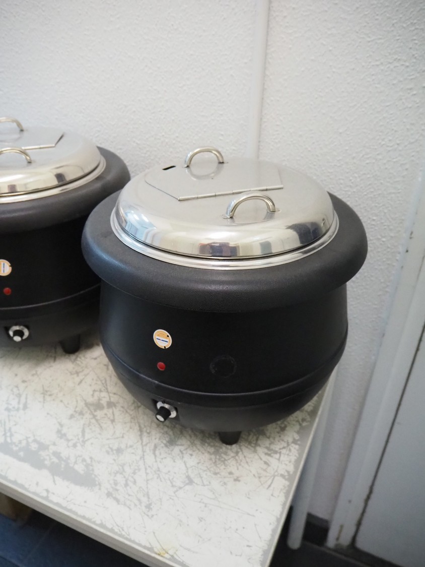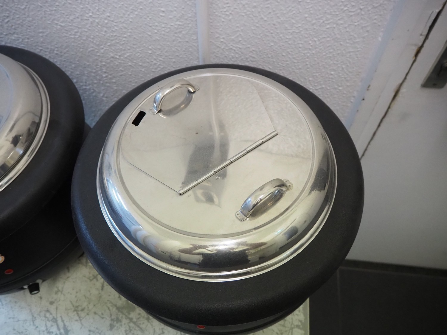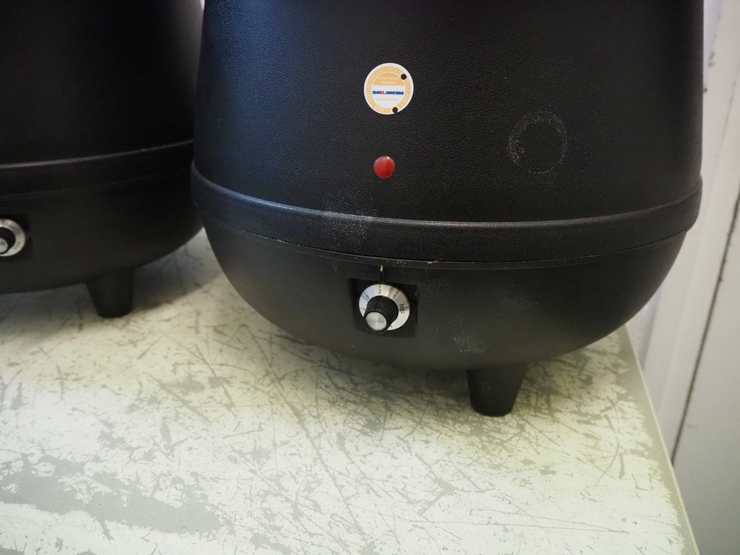 2 Sunnex electrical soup warmers, 220-240 V, 50 Hz, 400-450 W, dimensions: (2x) Ø 380 mm x 350 mm.