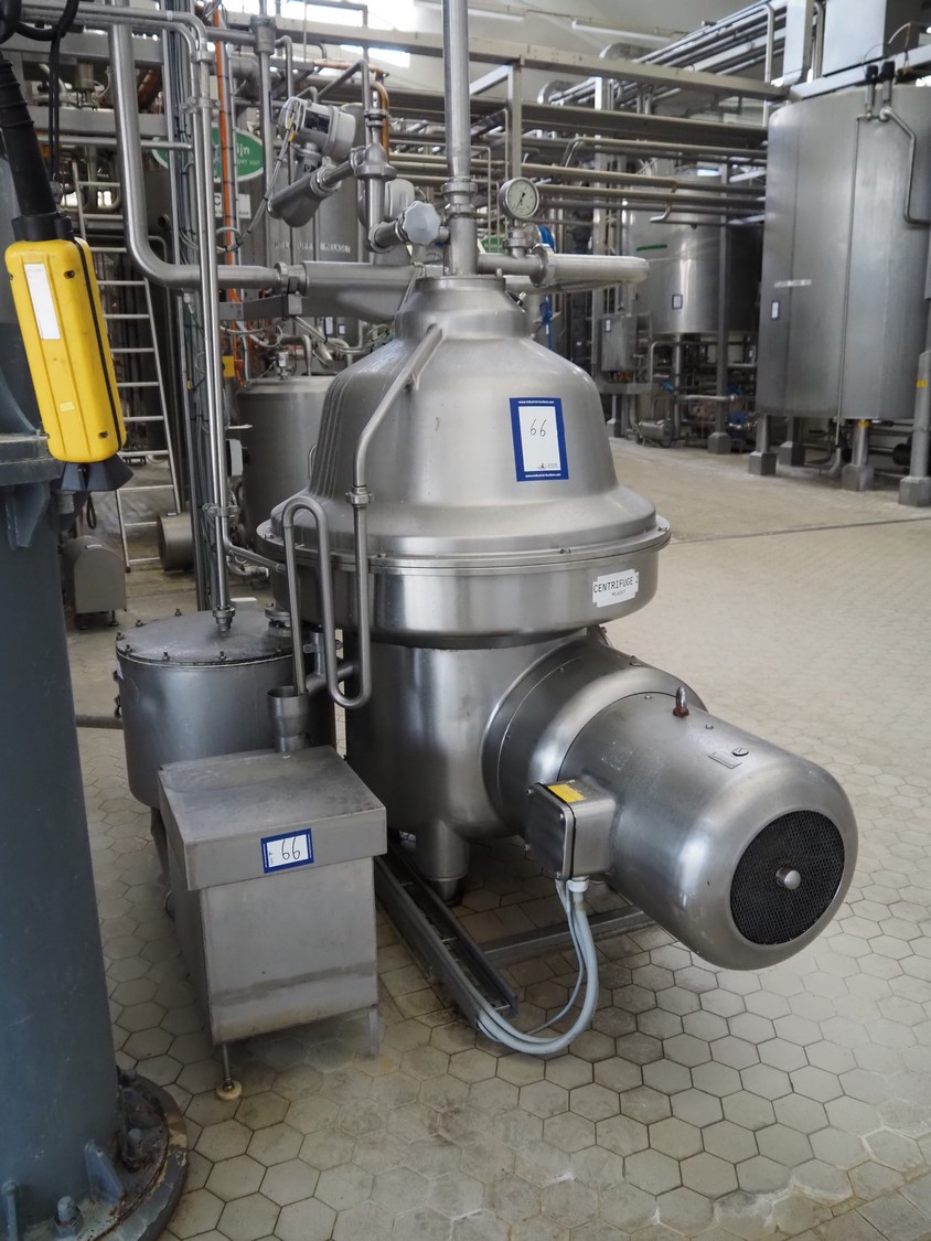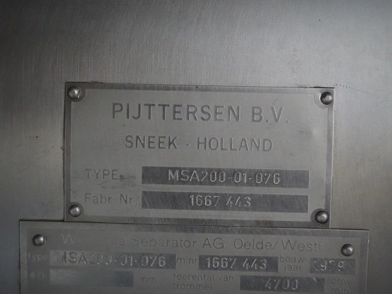 Westfalia Separator AG milk-cream separator, type: MSA200-01-076, machine number: 1667 443, year of construction: 1979, drum speed: 4700 rpm, dimensions: 2050 mm x 1500 mm x 1950 mm. Tools are not included, they are sold separately.