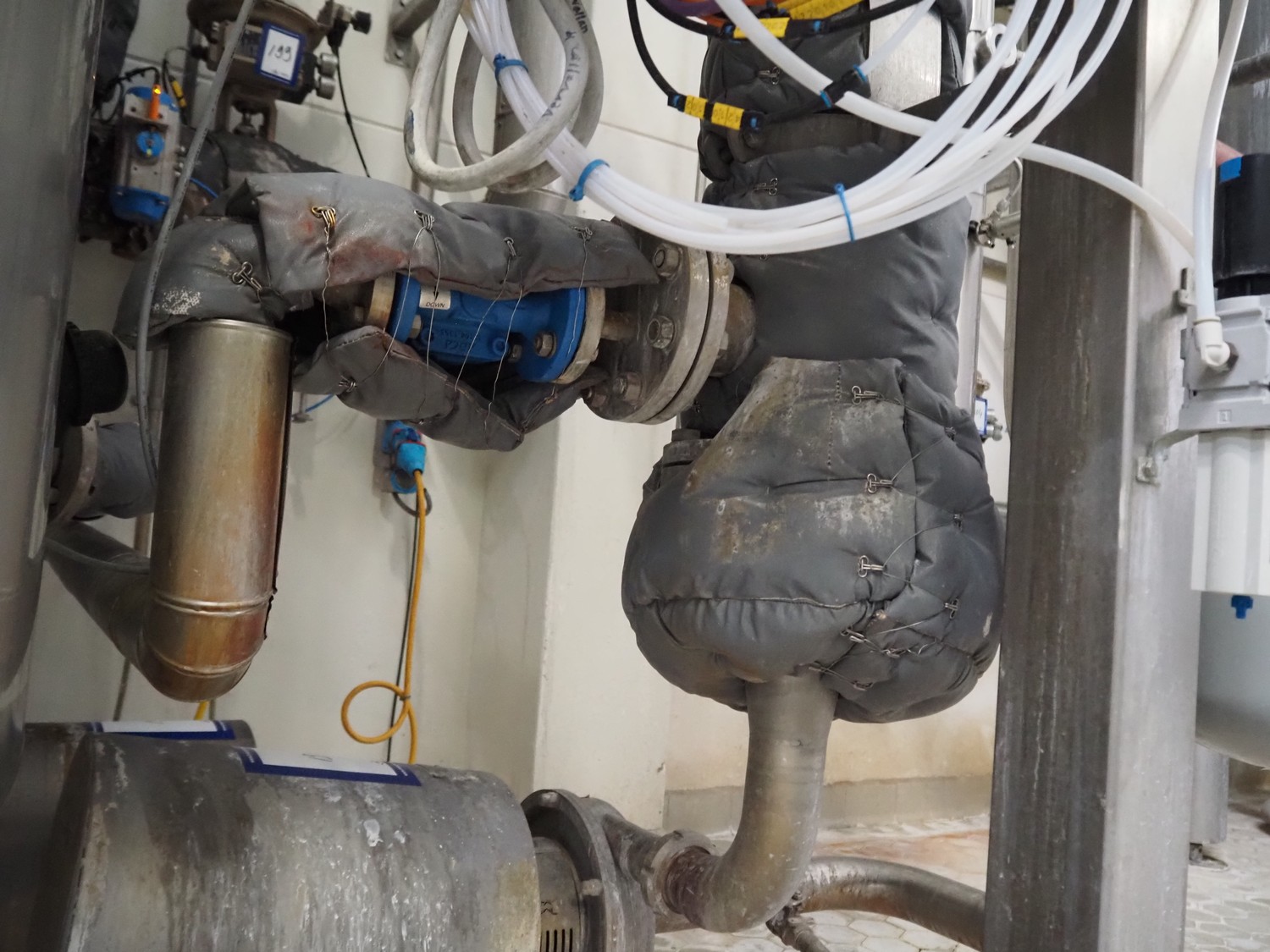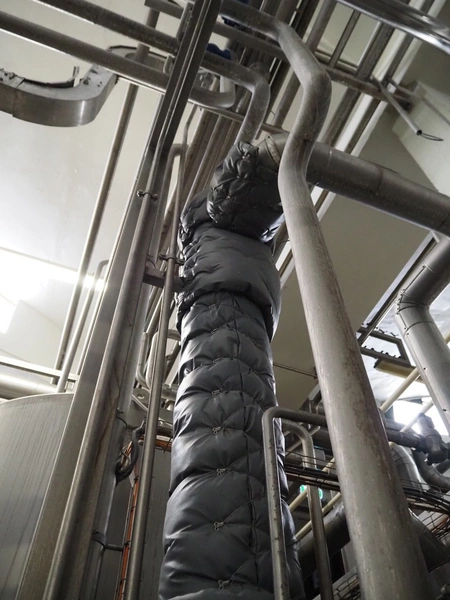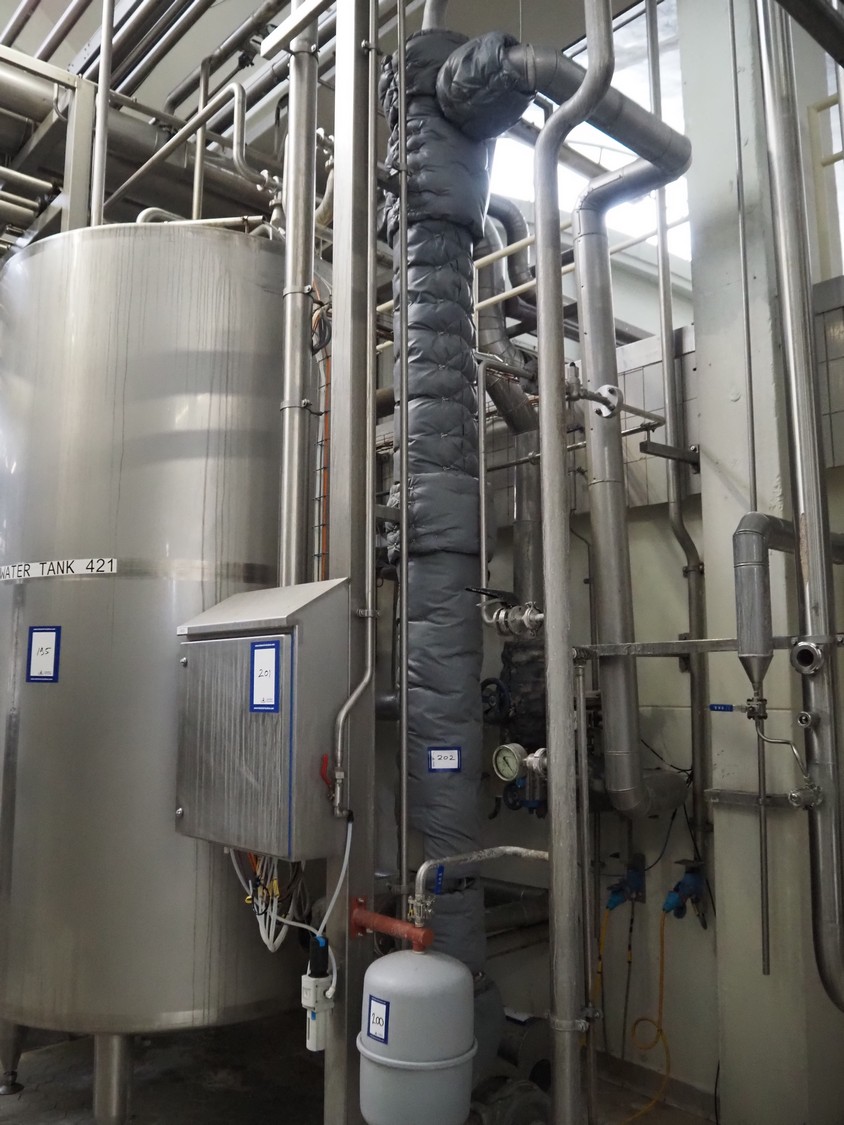 HRS Spiraltube S.L. tubular heat exchanger, model: HRS K37 30 3047316, serial number: P7023/1, max allowable pressure: 10/-1 bar, max allowable temperature: 185 °C, test pressure: 16.2 bar, dimensions: 350 mm x 350 mm x 3300 mm.