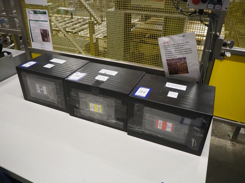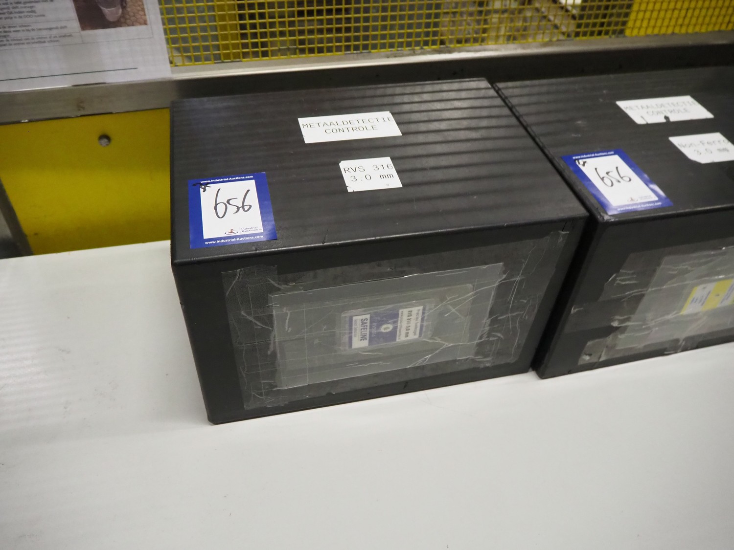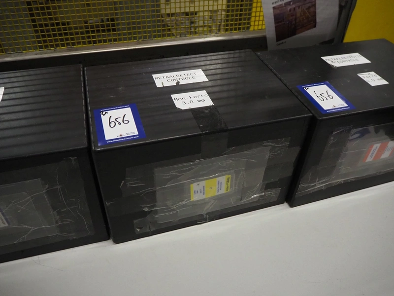 3 boxes with test equipment for Safeline metal detector, dimensions: (3x) 390 mm x 280 mm x 250 mm.