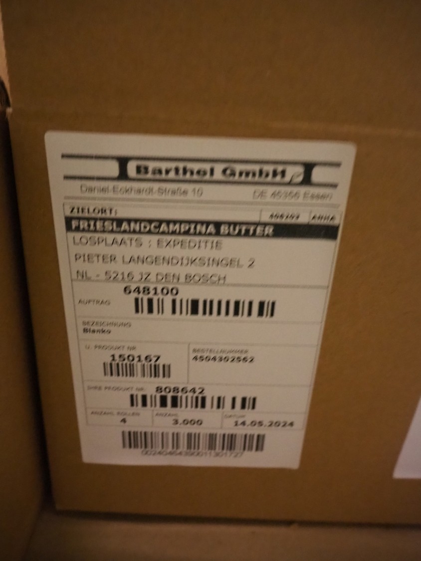 Pallet with 3 Boxes of Barthel GmbH labels.