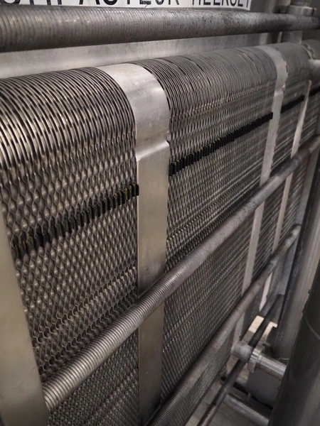 GEA Ahlborn cream pasteurizer, dimensions: 2200 mm x 550 mm x 1800 mm.
