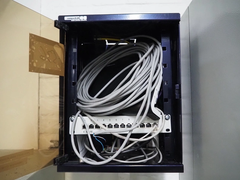 CompactLAN patch cabinet, dimensions: 280 mm x 230 mm x 360 mm.