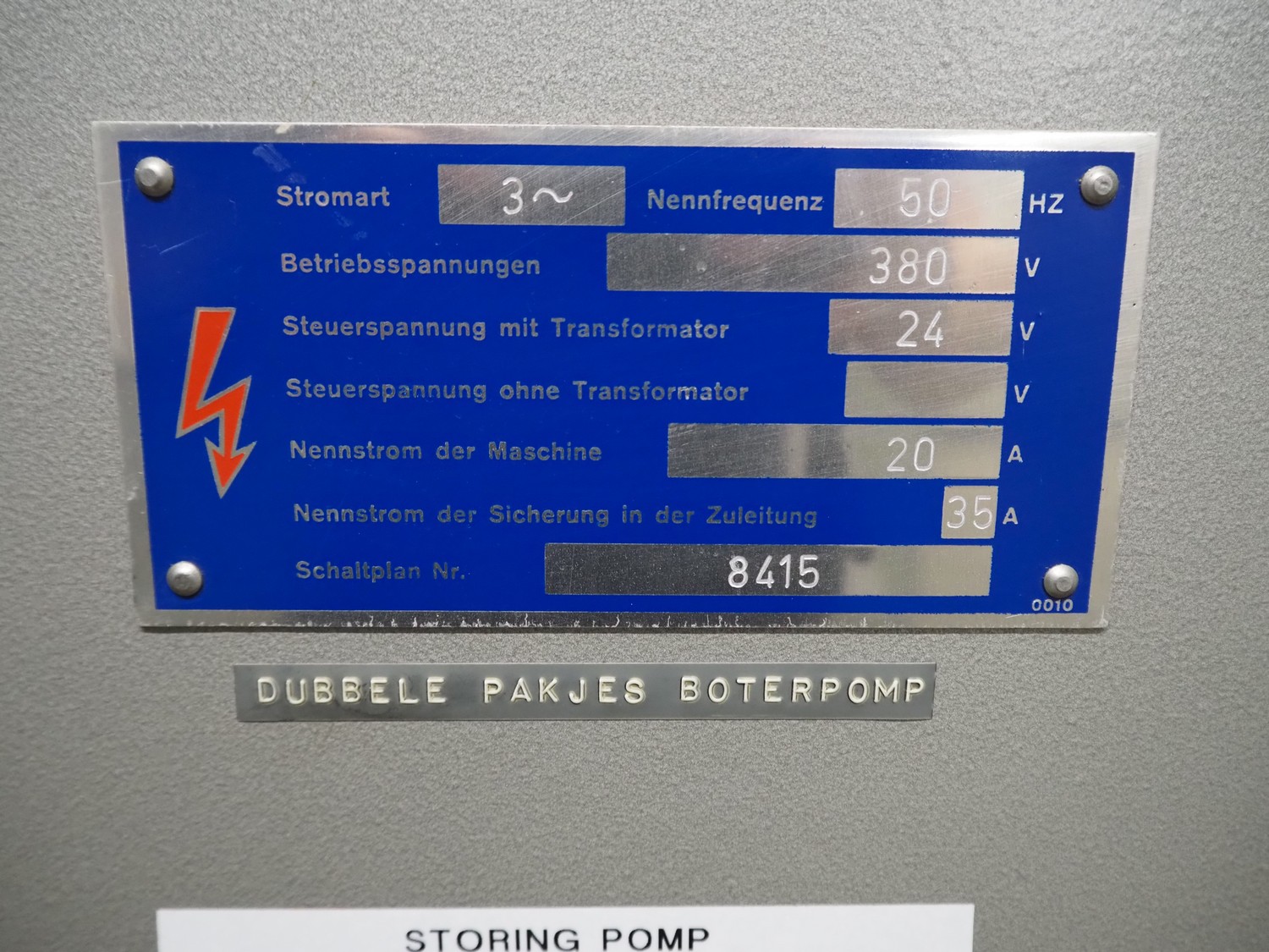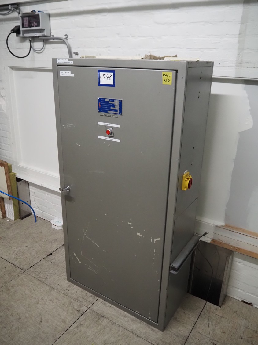 Steel switch cabinet, 380 V, 3 Ph, 50 Hz, 20/35 A, 750 mm x 350 mm x 1450 mm.