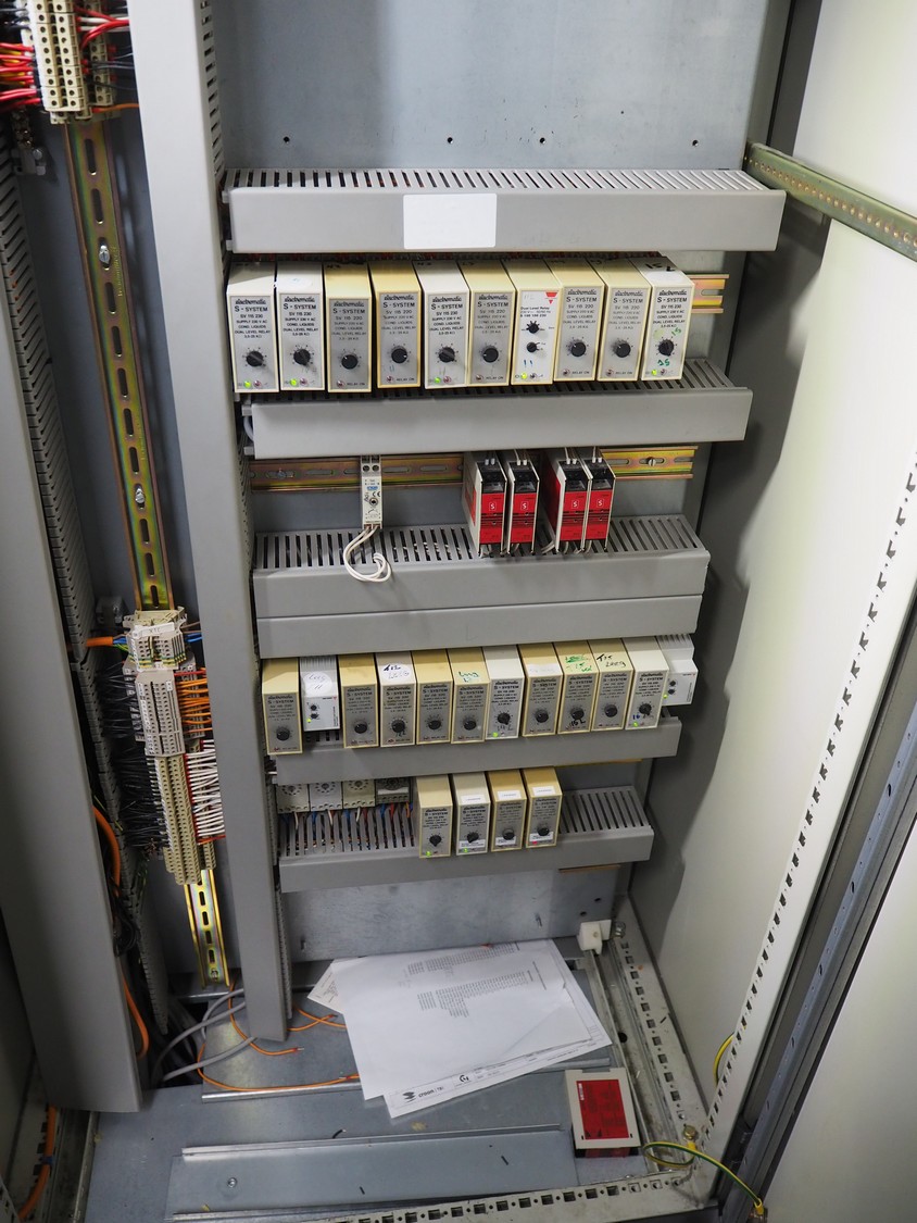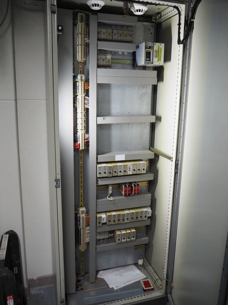 Steel switch cabinet, dimensions: 790 mm x 460 mm x 2100 mm.