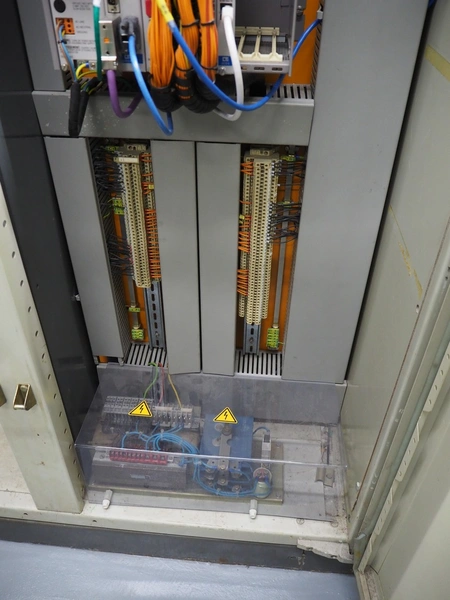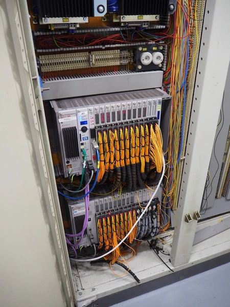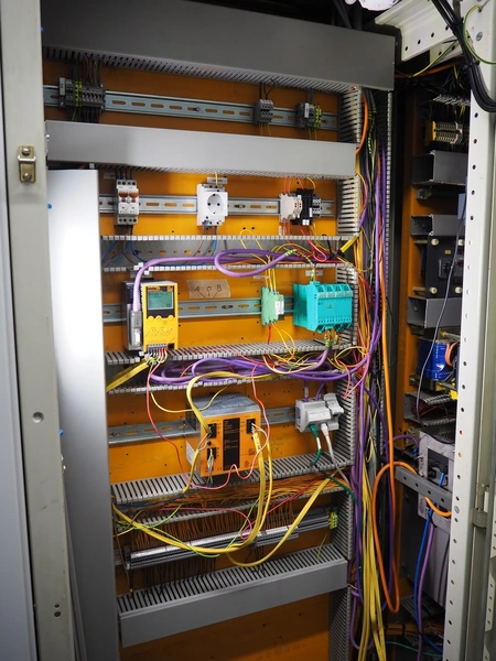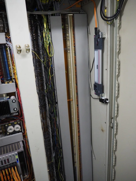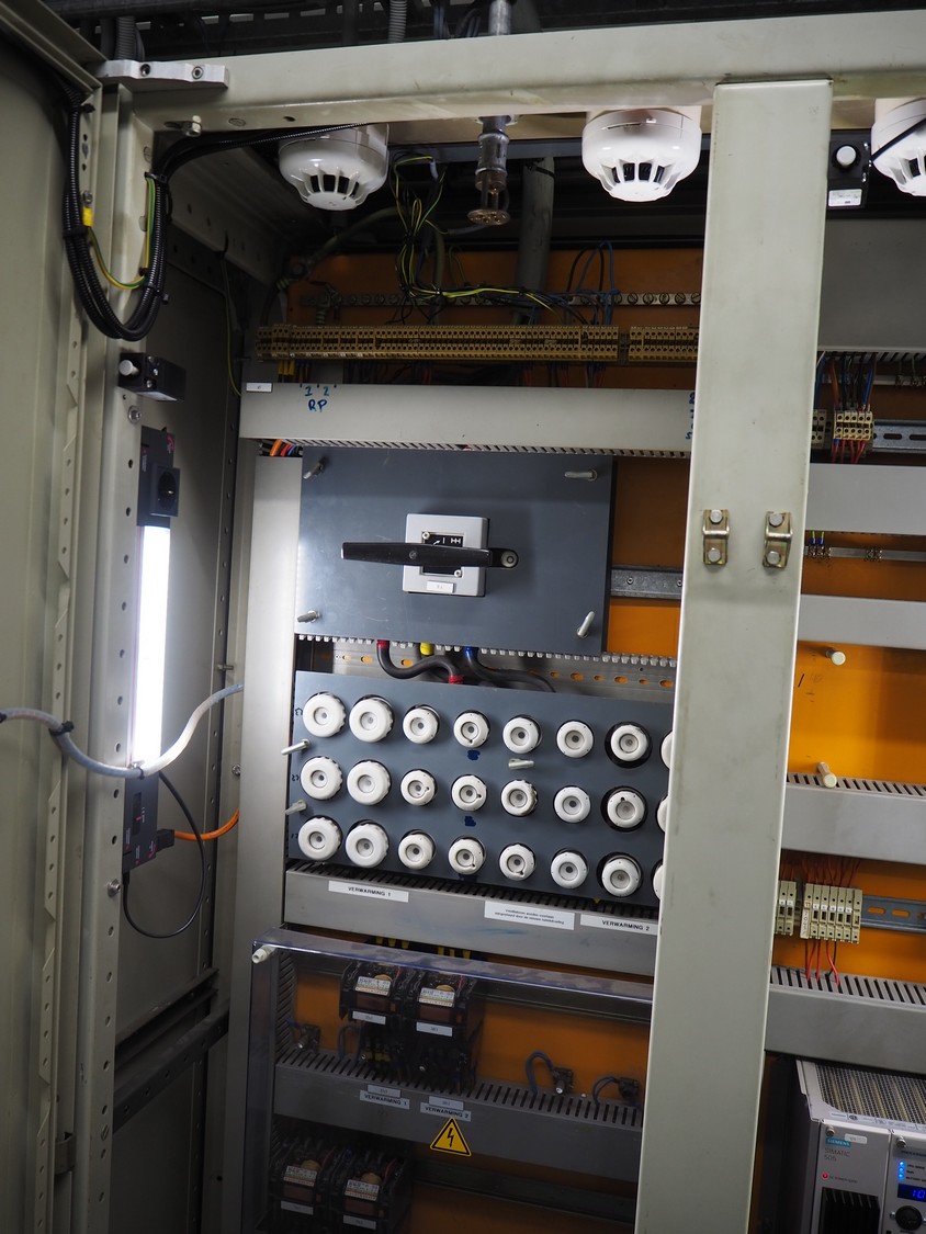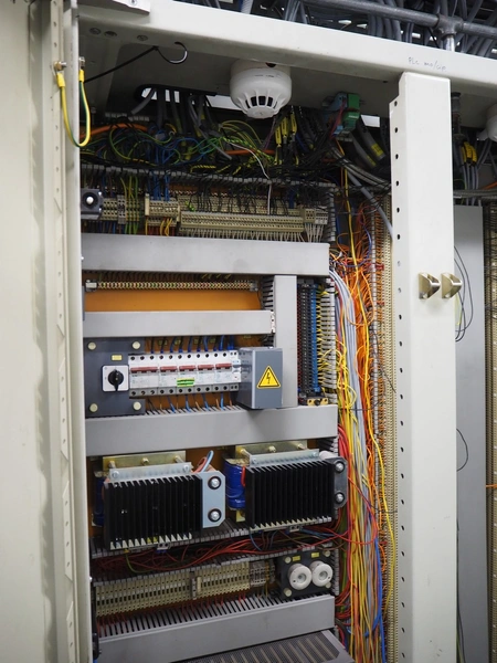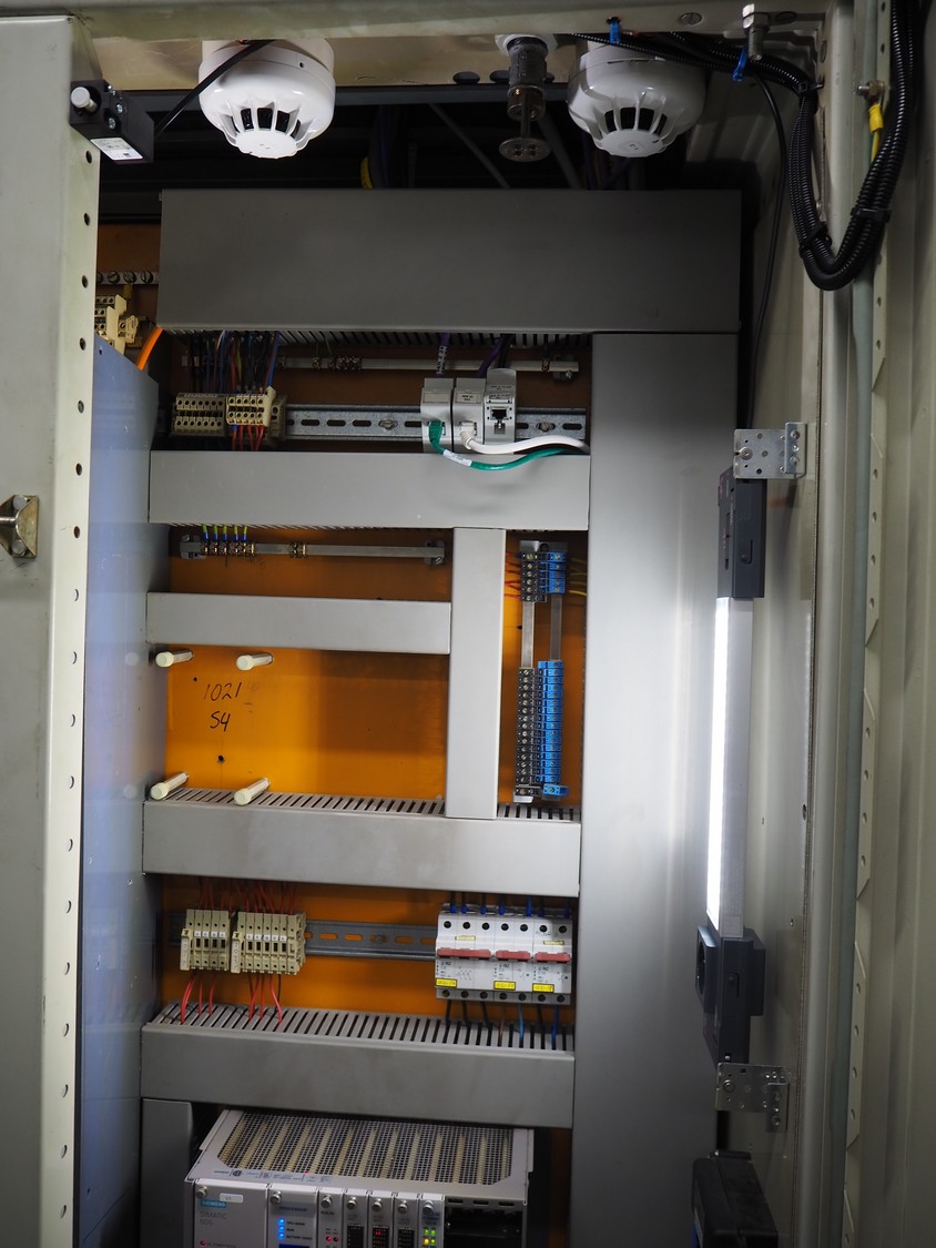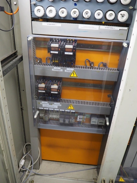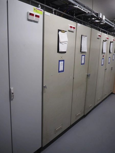 Steel switch cabinet, dimensions: 3150 mm x 500 mm x 2100 mm.