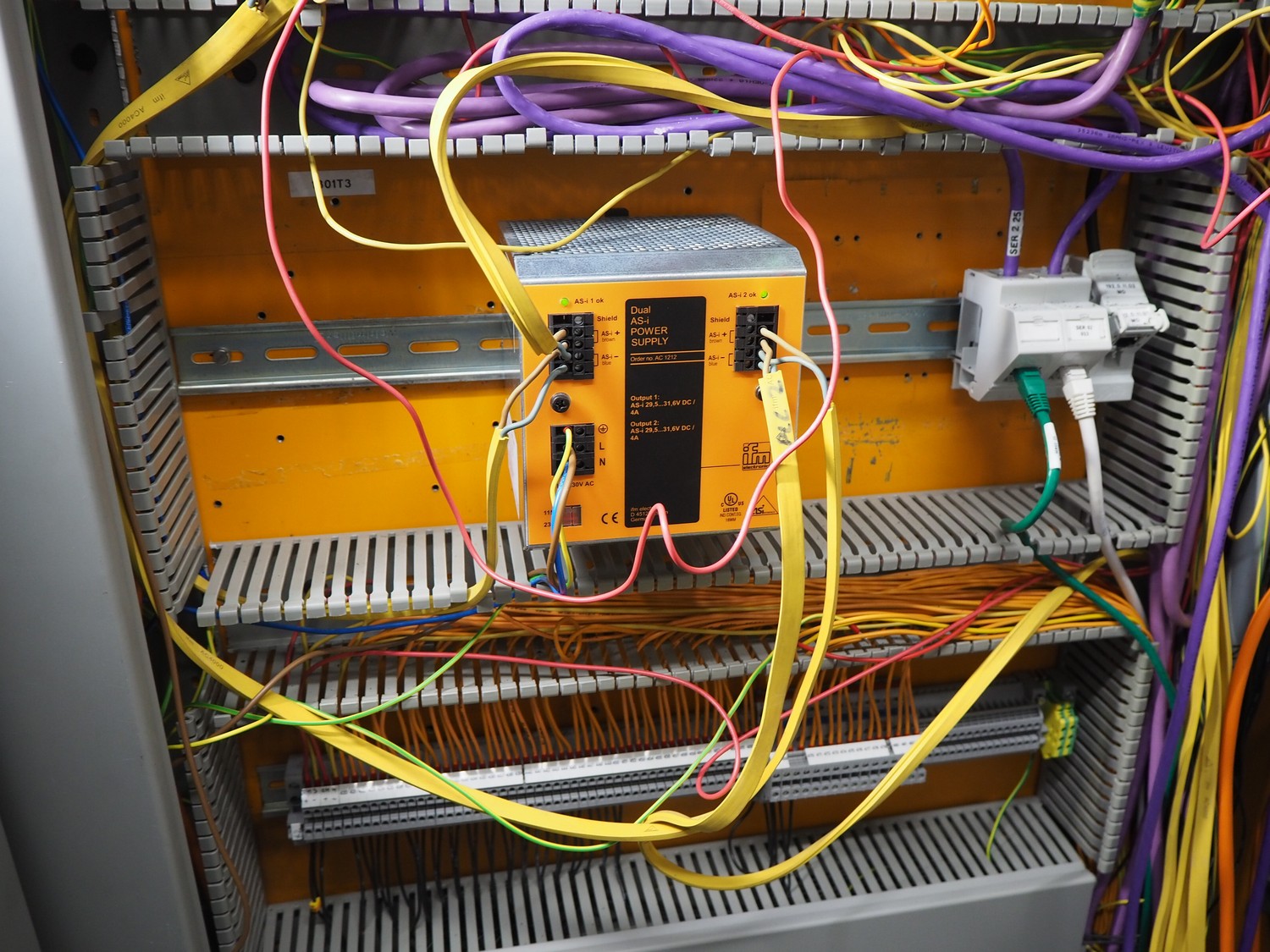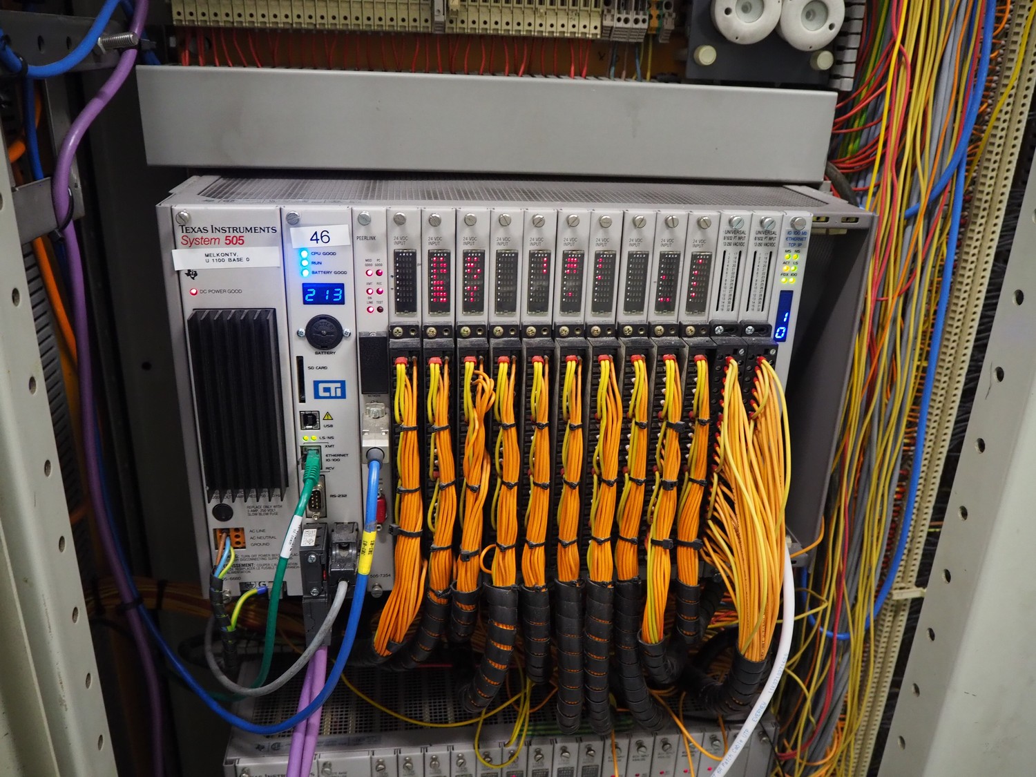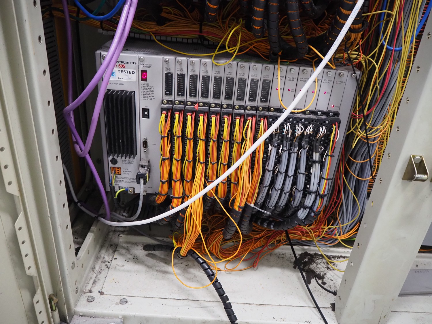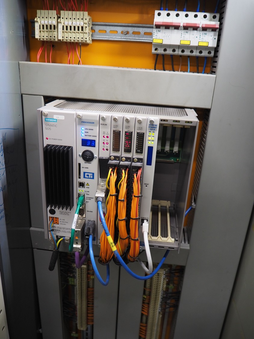 Steel switch cabinet, dimensions: 3150 mm x 500 mm x 2100 mm.